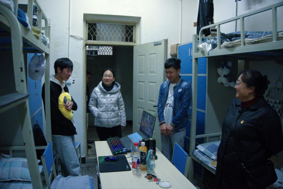 为了解学生学习生活情况,关心学生日常生活问题。11月10日晚19点,校长陈颖、学生处处长李广涛、澳门十大信誉好的网站党总支书记王春莲及辅导员朱波、毛颖共同前往五栋澳门十大信誉好的网站21级男生宿舍进行走访,并对同学们表示慰问和关心。