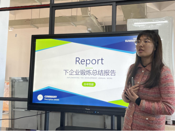 随后,孙辛悦容老师从辅导员身份出发,结合自身职责,对本次企业锻炼进行了心得分享。她结合企业对学生的能力需求,向与会教师强调了专业理论知识、实操动手能力的重要性。此外,汇总了学院在岗学生希望企业可以提供更高的晋升空间,开展更加系统、高质量的业务培训等意见。针对学生走出去动力不足、工作能力较弱等问题,她希望在今后的学生管理工作中,正确引导学生树立正确的就业观,充分发扬“三光荣”精神。