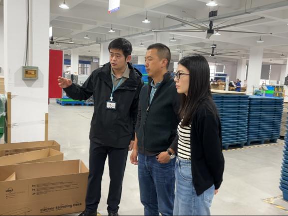 在南通市九正人体工学股份有限公司,两位老师参观了研发、组装、调试、包装等车间,整个生产链条完整呈现,企业方介绍了显示器支架、升降桌等主打产品,并着重阐述了与学院专业对口的岗位情况及技能要求。