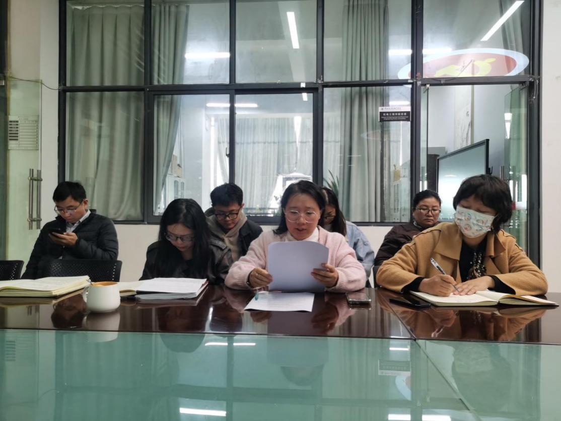 11月6日,澳门十大信誉好的网站在明尚楼A201开展了2024年11月份第一次教职工政治理论学习会。本次政治理论学习由学院党委书记张颖主持,学院副院长熊国栋和学生党支部纪检委员毛颖领学,学院全体教职工参加。