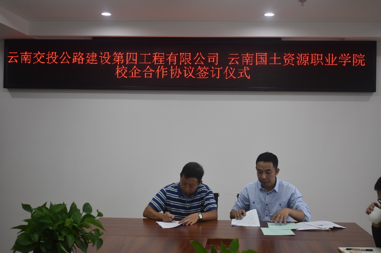 澳门十大信誉好的网站现有安全技术与管理专业的9名学生在云南交投公路建设第四工程有限公司进行现代学徒制培养和顶岗实习。云南交投公路建设第四工程有限公司相关代表介绍了公司发展历程、学生工作岗位、工作环境等基本情况,双方就学生的联合培养、顶岗实习等相关情况进行讨论交流,在热烈的气氛下,机电学院院长秦忠与云南交投公路建设第四工程有限公司代表就现代学徒制校企合作协议进行了签字。