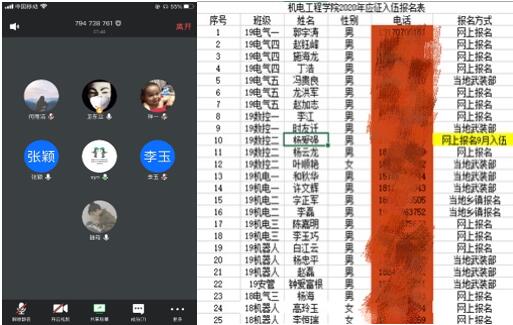 图9 机电学院征兵工作网络会议和征兵报名统计表