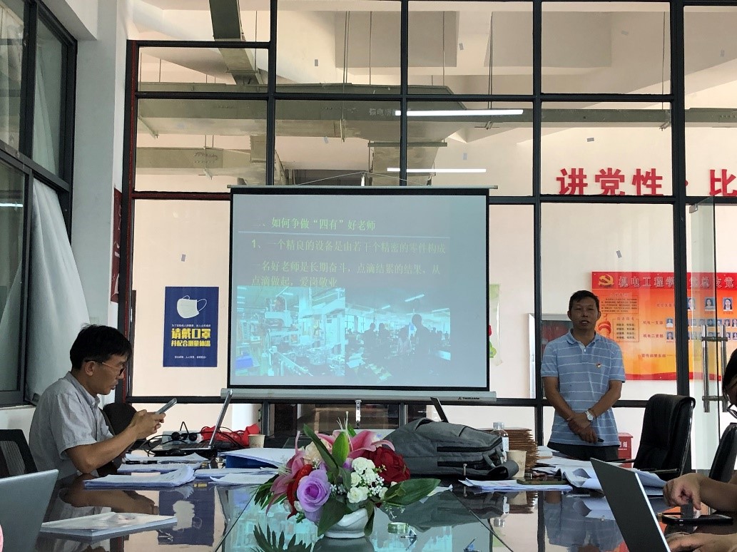 会议第一项,云岭工匠、学院院长秦忠为大家讲党课,党课主题是“苦干实干,争做四有好老师”,秦忠同志从新时代教师的初心和使命、习近平总书记“四有”好老师的内涵要求和学院招生、就业、疫情防控、教学等工作中的教师典型事例三个方面阐述了新时代的教育工作者的初心和使命,分享了自己对“四有”好老师的认识和实践经验。党课主题鲜明、重点突出、内涵丰富、条理清晰,对全体党员教师有很强的教育指导性。