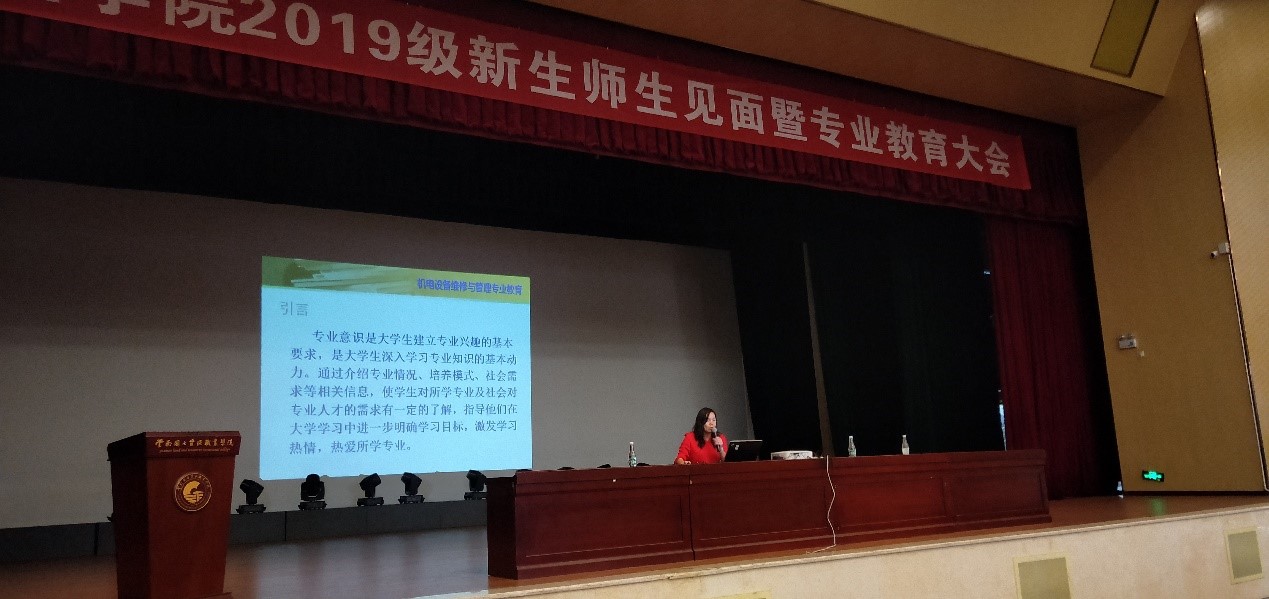 俗话说:“良好的开端是成功的一半”,为了帮助2019级大一新生尽快适应大学生活,为大学生活开创一个良好的开端,同时也为增进师生间相互了解,方便今后的学习生活,澳门十大信誉好的网站于9月16日下午3点在明礼堂举办了2019级新生师生见面会暨专业教育大会。参加本次会议的有澳门十大信誉好的网站院长秦忠,党总支副书记张颖,各教研室主任及全体教职工。