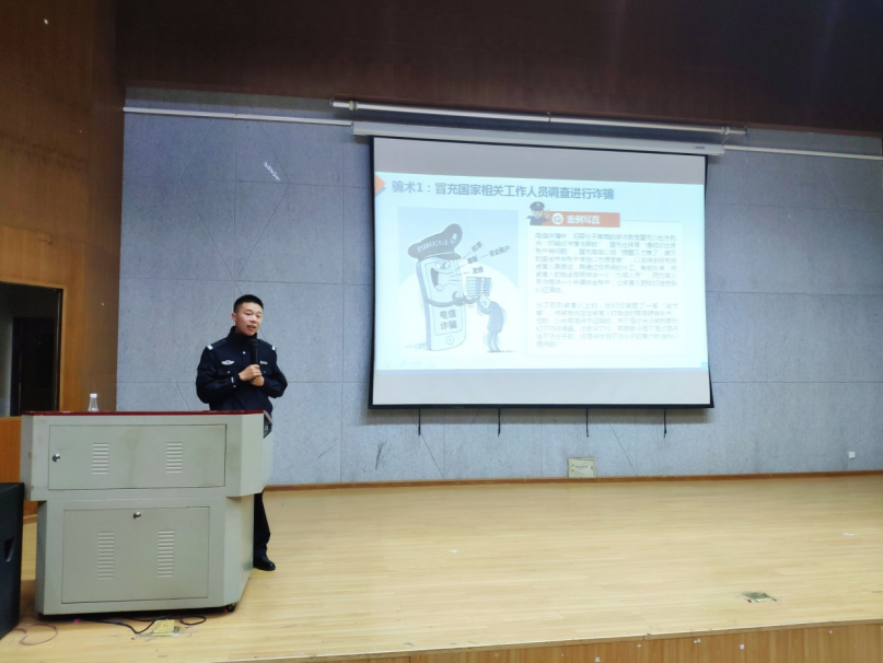 首先,葛俊华警官告诉同学们什么是电信诈骗,诈骗是指犯罪分子通过电话、网络和短信方式,编造虚假信息,非接触式的诱使受害人打款或转账的犯罪行为;同时也给同学们宣讲了电信诈骗的常见形式,让同学们时刻牢记于心,并向同学们讲述如何识别电信诈骗。诈骗与我们的生活息息相关,而且屡次发生在同学们身上。因此,同学们应该时刻牢记“五不要”小心谨慎,仔细甄别,把“六个一律,八个凡是”践行起来。在无法确定真假时要及时报警求助。