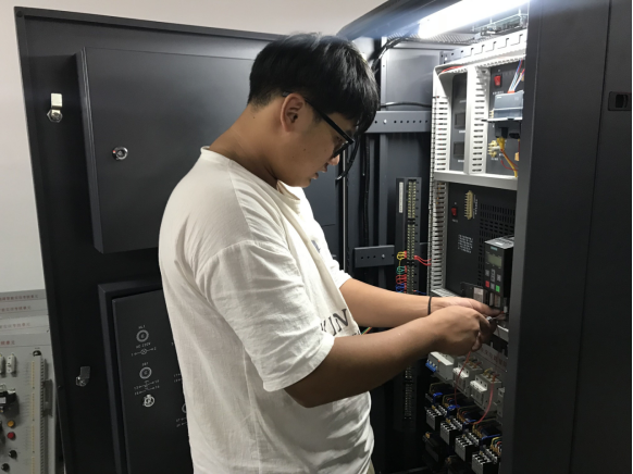 比赛现场,各队选手沉着冷静、娴熟操作,用每一个电路的连接来展示自己扎实的功底,用每一个功能的调试来展示自己的专业技能水平,高效地运用所学知识技能,高质量地完成每一项操作步骤,展现了机电学子拼搏向上的精神面貌和“精益、专注、创新”的工匠精神。