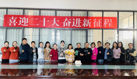 最后,裴倩倩老师代表学院全体师生为汪全美老师送上鲜花,全体在校教师一起合影留念,并祝汪老师退休快乐,身体健康,阖家幸福!