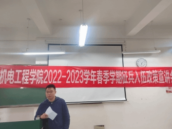 本次征兵宣讲会帮助同学们深入了解了征兵入伍最新政策,激发了机电学子携笔从戎的热情,为学院下一步落实好征兵入伍工作奠定了坚实的基础。希望我院学子积极报名参军入伍,把青春和热血融入伟大祖国的复兴征程,融入威武雄壮的钢铁洪流,努力书写属于自己的壮阔军旅人生!