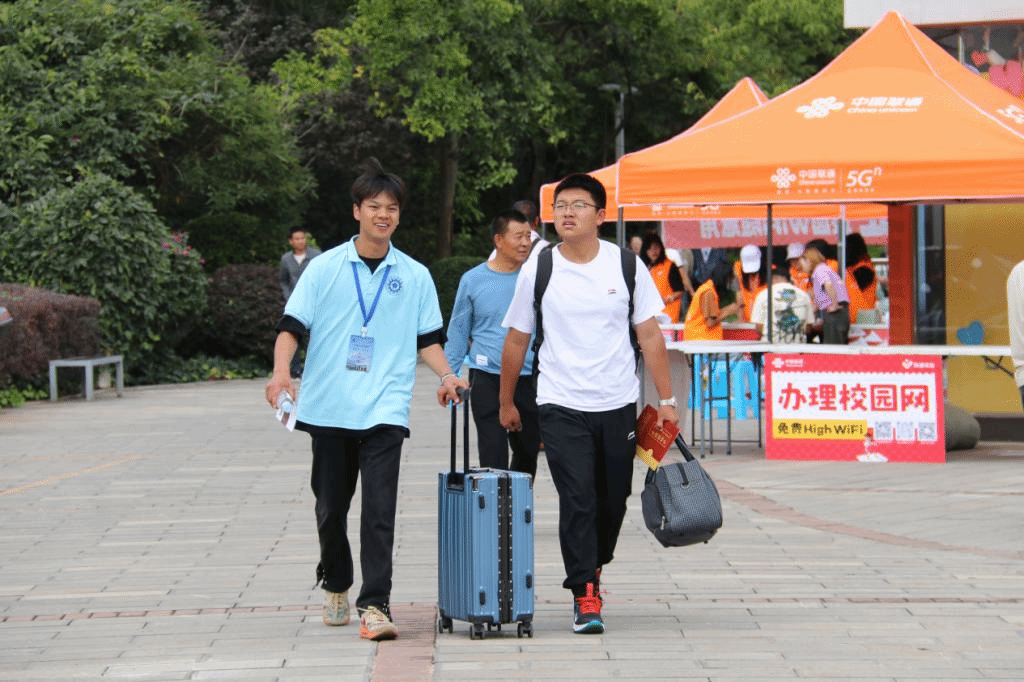 828日晨曦,志愿者们早早就位。帅气的学长们站在校园门口,满心欢喜地迎接新生的到来,热心地帮助新生将行李搬到宿舍,引导他们到观山楼检录点检录。漂亮的学姐们整齐落座,帮助萌新们扫码登记、添加班级群、关注学院公众号、分配宿舍。志愿者们热情的帮助、亲切的笑容、周到的服务让小萌新们倍感温暖。