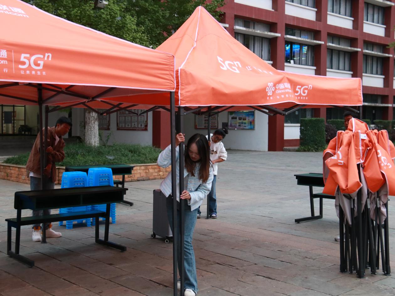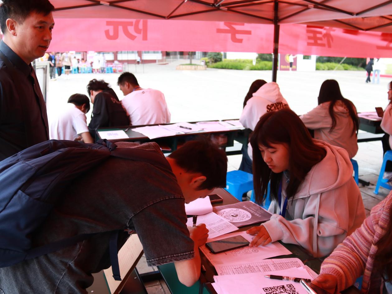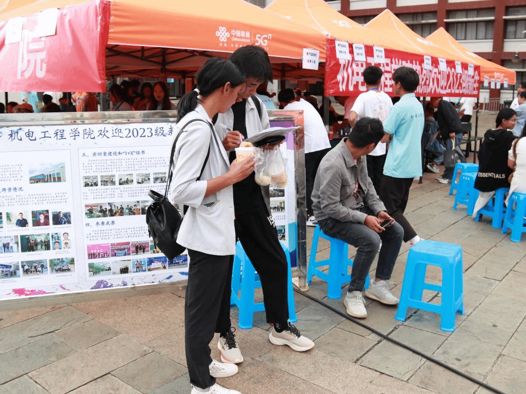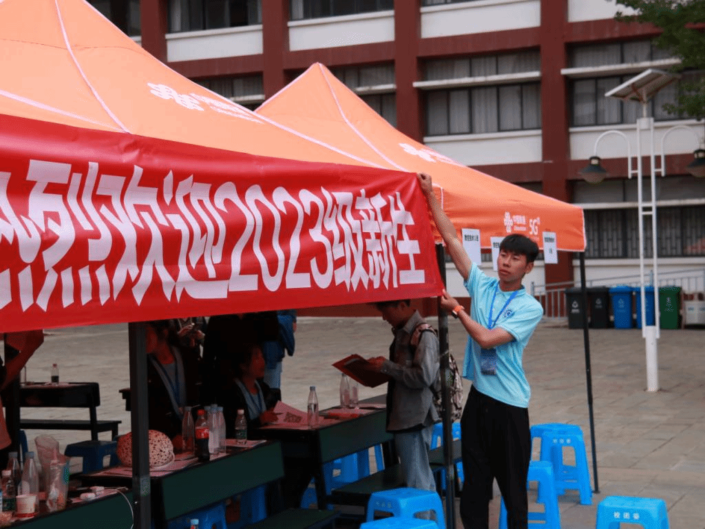 国土广场上,告别父母时的叮咛、行李箱拖动的哗哗声、一排排的黄帐篷、一张张介绍的海报……都在无声地告诉新生们,一段新的、难忘的旅程即将开启。他们拿起笔,认认真真、一笔一画地将自己的名字留在了签名墙上,默默地将国土的美好初印象刻在心上,将步入新环境的好奇和小激动藏在言语间。
