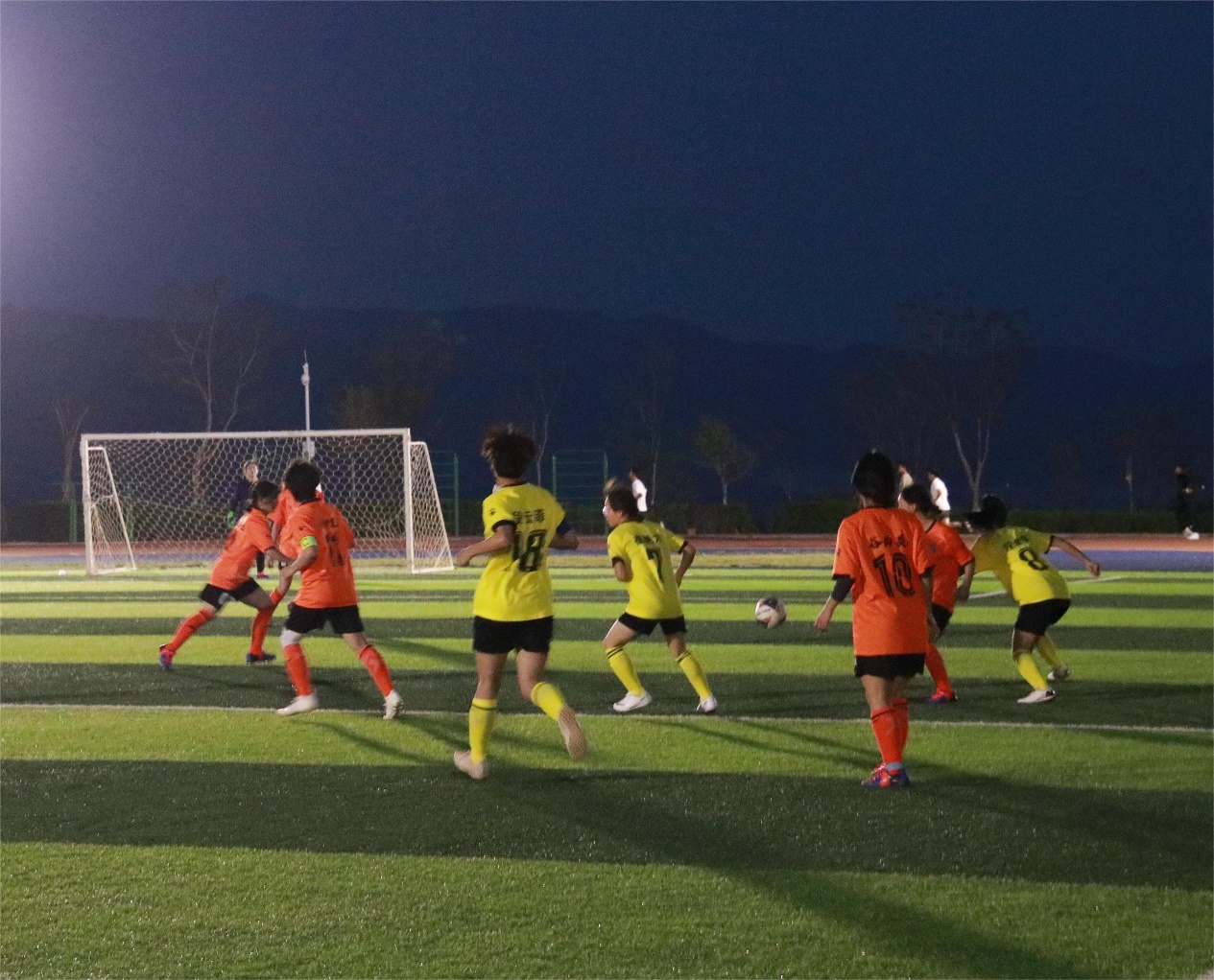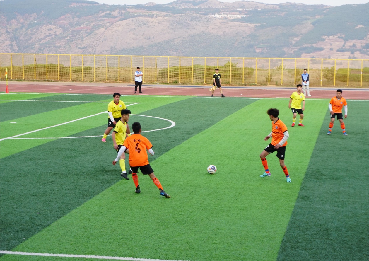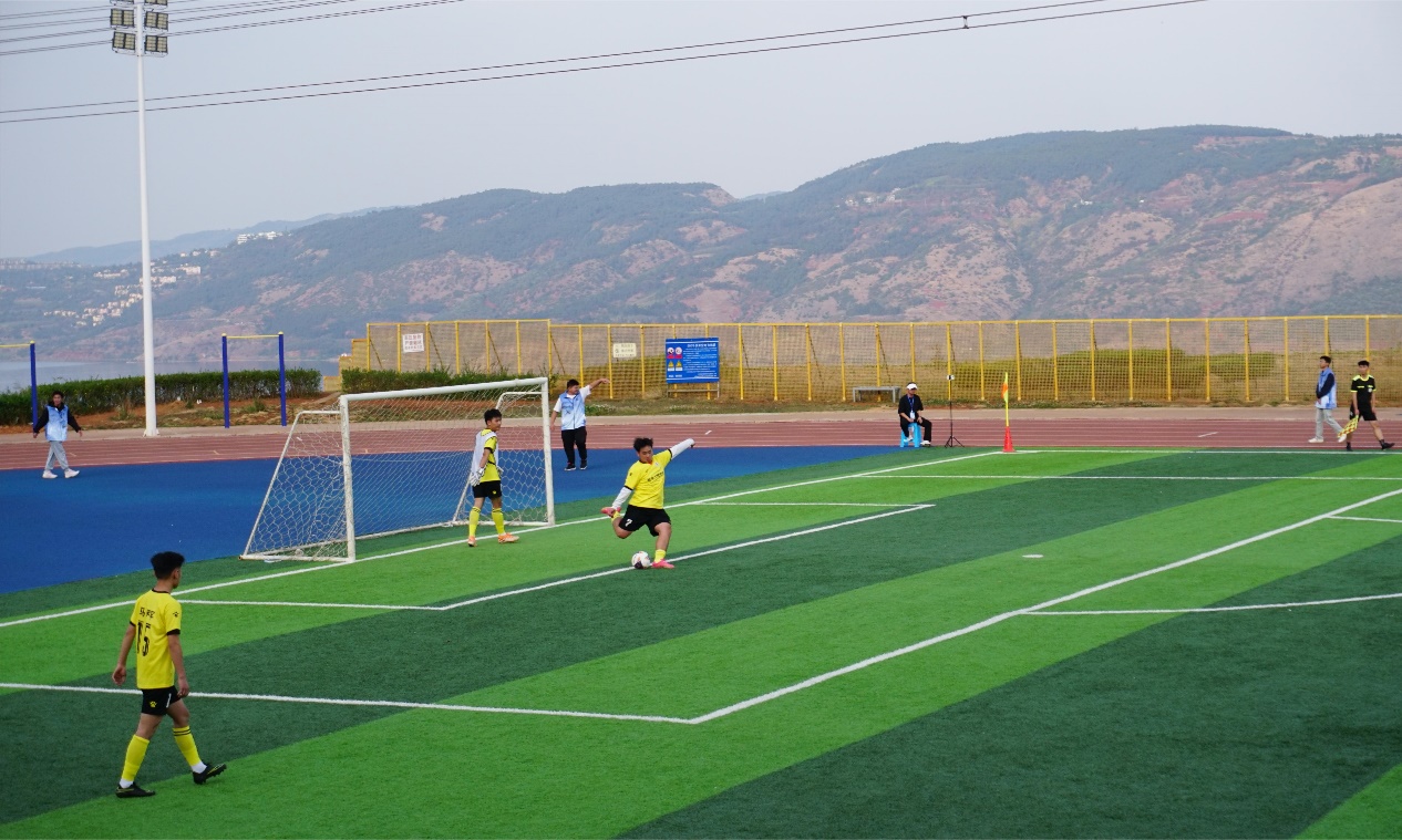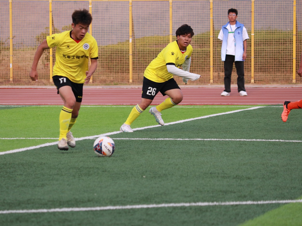 比赛开始,球员们火力全开,机电小伙们在球场上奔跑、运球、过人、抢球、射门,小小足球在球员的脚下不停地穿梭。球员们一次次的成功抢断、沉着冷静的临门一脚、守门员每一次灵活的扑救,都迎来了同学们的阵阵掌声和欢呼声。