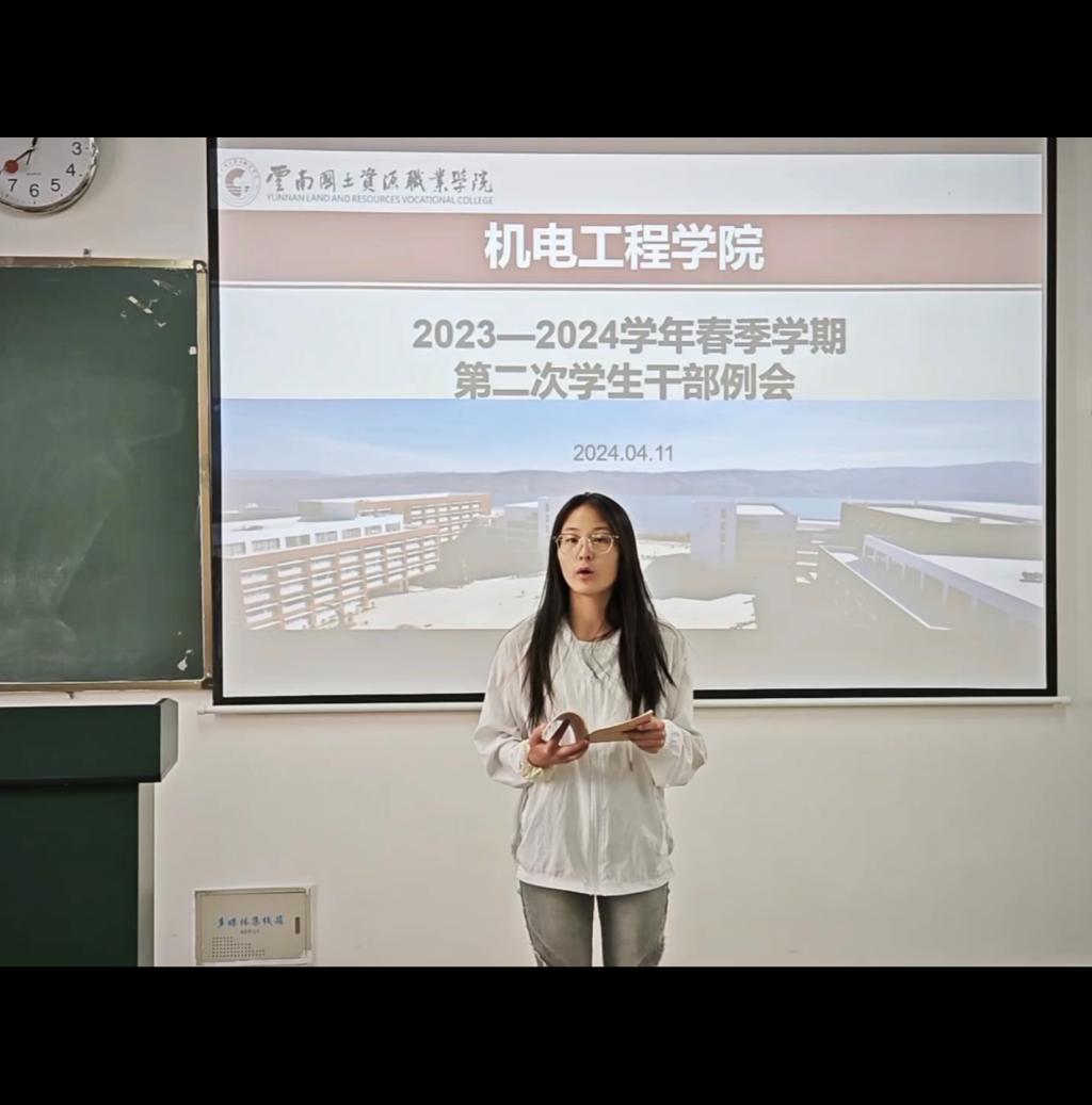 会上,首先由学生会主席杨丽珍和团总支副书记段金娈分别对学院3月份的团学工作情况进行汇报。随后,马玲老师对三月份的团学工作进行了总结,指出各部门存在的问题以及改进措施。紧接着,马玲老师向各部门负责人传达并分配了四月份的工作安排,督促各部门负责人要主动工作,做好统筹与分工,发挥好传帮带作用,提高部门干事和志愿者的积极性,强化集体意识和责任意识,并要求各部门积极承办院级第二课堂活动,创新活动形式,丰富机电学子的课余生活。最后全伟东老师指出,团学各部门应协调配合,提前做好计划与部署,积极开展工作,明确岗位职责,找准定位,增强服务意识,为迎接本月几次大型赛事活动做好充分准备。