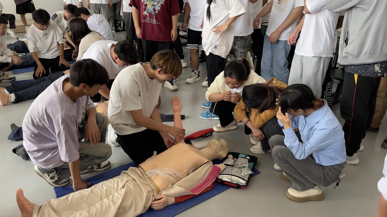 接下来,冯溪阳老师为同学们讲授创伤包扎技能,从头、面、颈、臂等12个部位培训包扎方法,为同学们讲解了这些部位包扎时的注意事项,并亲自演示包扎方法。到了分组实践环节,同学们积极参与,在老师的指导下规范操作,将理论与实践相结合。