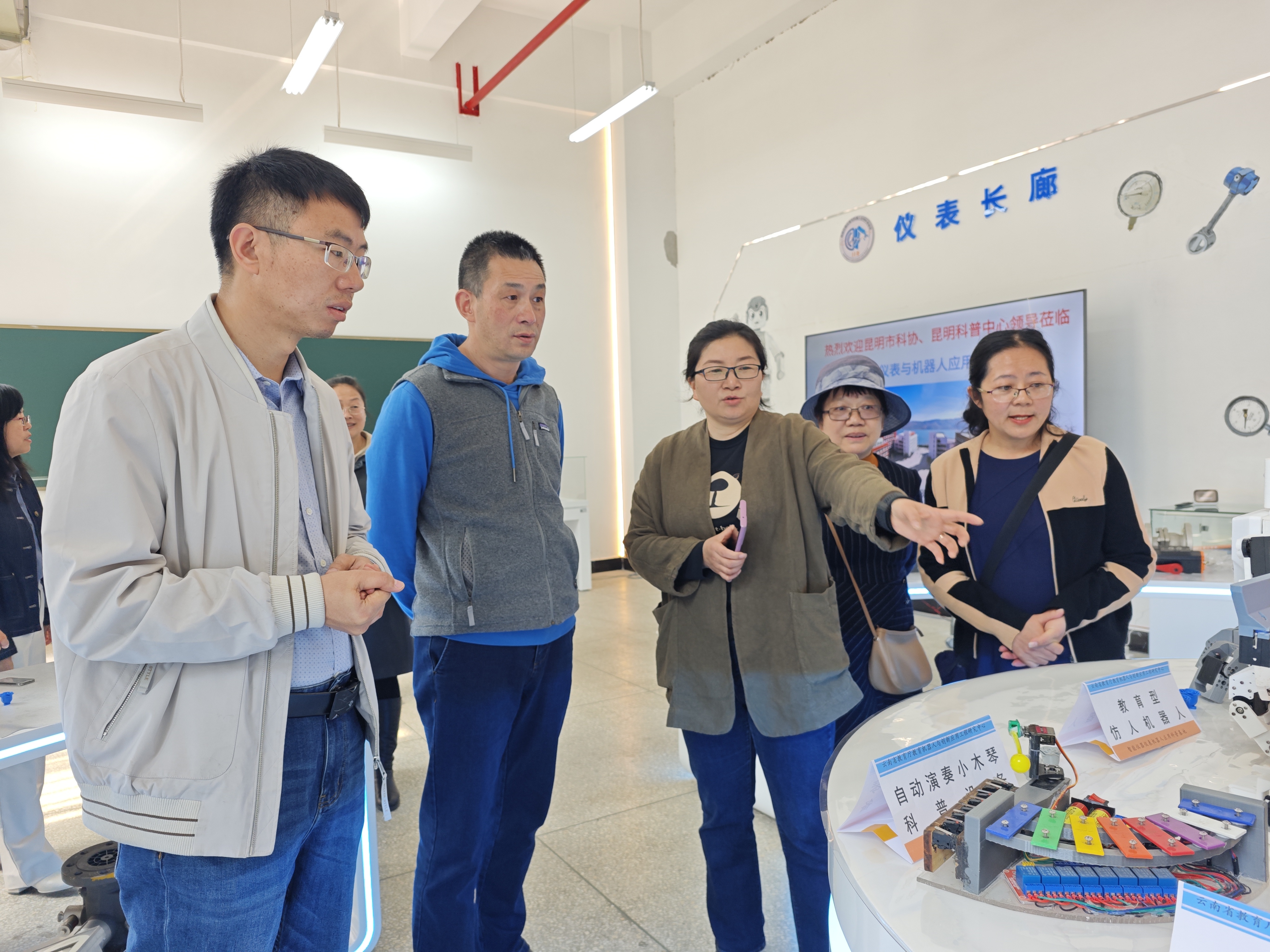 3月28日上午,昆明市科学技术协会与昆明科普中心一行到我校智能仪器仪表与机器人应用科普基地进行参观交流。学校副校长张云霞,科研管理与社会服务中心主任李艳丽以及澳门十大信誉好的网站教师代表全程陪同。