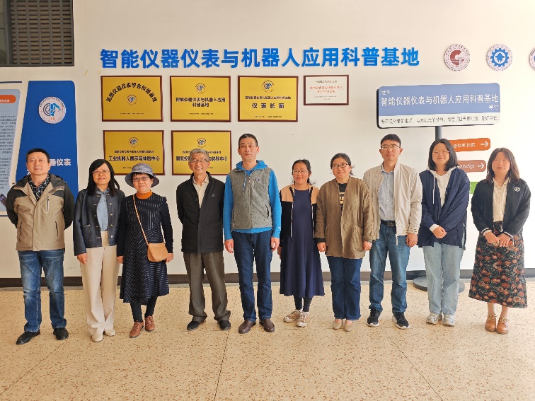 在智能仪器仪表展示区,科普基地负责人曹瑜详细介绍各类仪器,来访人员认真聆听,交流热烈。随后,众人又依次参观了工业机器人实训室,自动化生产线实训室和安全消防体验馆。