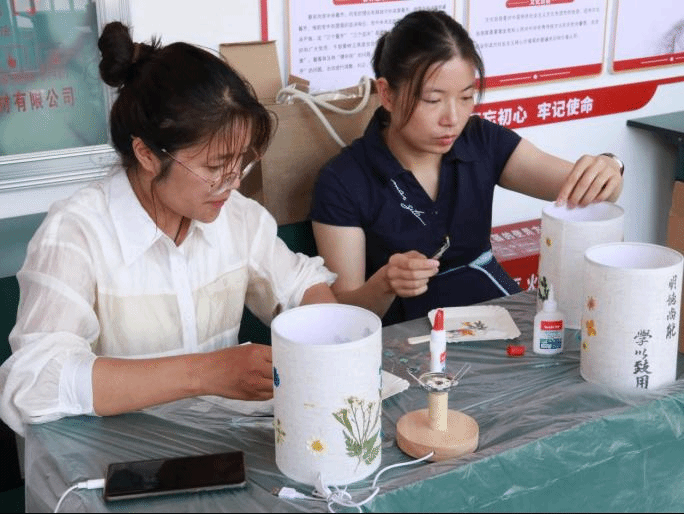 本次活动在浪漫又温暖的气氛烘托下,迎来了一场独具匠心的古风压花台灯制作之旅,不仅为身心繁忙的老师们点亮了疗愈之光,驱散心中的阴霾,还让独具特色的花艺台灯点亮了心中美好和希望。