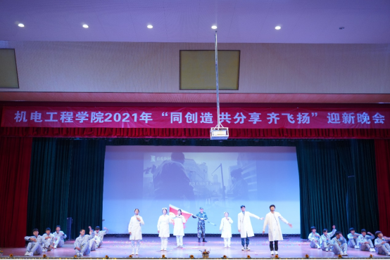 本次晚会内容丰富、形式多样,并穿插了滚屏抽奖环节推动现场气氛。新生班级积极参与、精心排练,在舞台上展现出了机电学子们的青春与朝气。带着浓厚红色底蕴的话剧《初心》率先出场,再现了嘉兴南湖的红船上中共一大召开的场景;歌舞剧《身着白衣,心有锦缎》通过时代最美的逆行者演绎了“抗疫”的艰辛与成果;舞蹈《灯火里的中国》以优美的舞姿,展现了对国家富强的赞美与歌颂;小品《刺客与皇帝》打破了正史的严肃,用幽默创新的语言动作引得大家阵阵欢笑;《hiohop舞蹈串烧》以青春活力的舞步赢得观众鼓掌喝彩;《陪你走过的岁月》采用影子秀的方式演绎了一场唯美的校园爱情;蒙古舞《走马》,用铿锵有力的步伐,带领全场观众驰骋草原,感受了自然风光的辽阔。