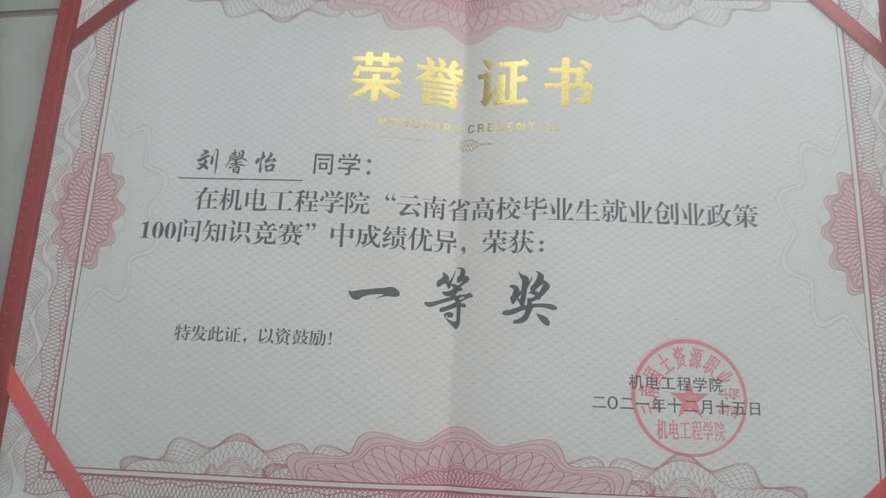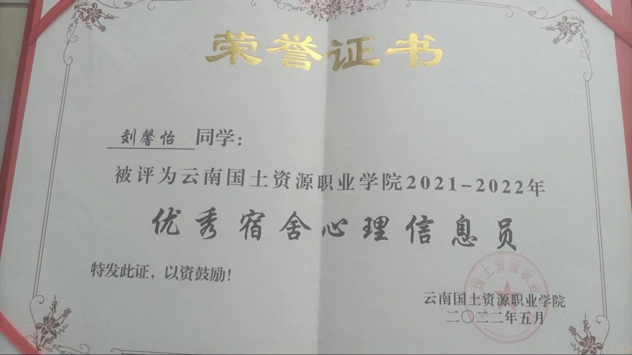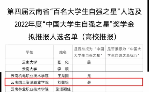 近日,由共青团云南省委、云南省学生联合会、云南省青少年发展基金会、华能澜沧江水电股份有限公司联合开展的第四届云南省“百名大学生自强之星”寻访活动结果已揭晓,我院2020级安管3班团支部刘馨怡同学被评为云南省“百名大学生自强之星(创新创业类)”。