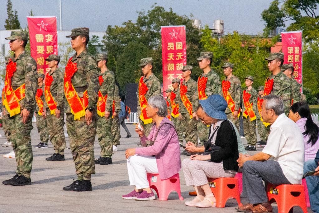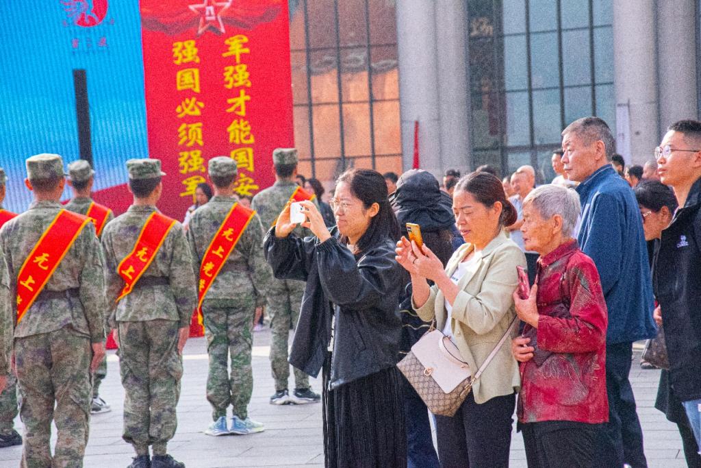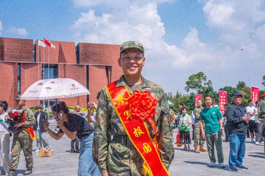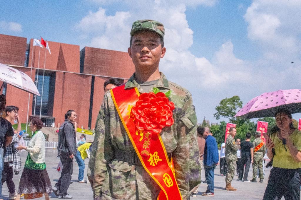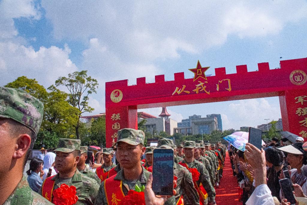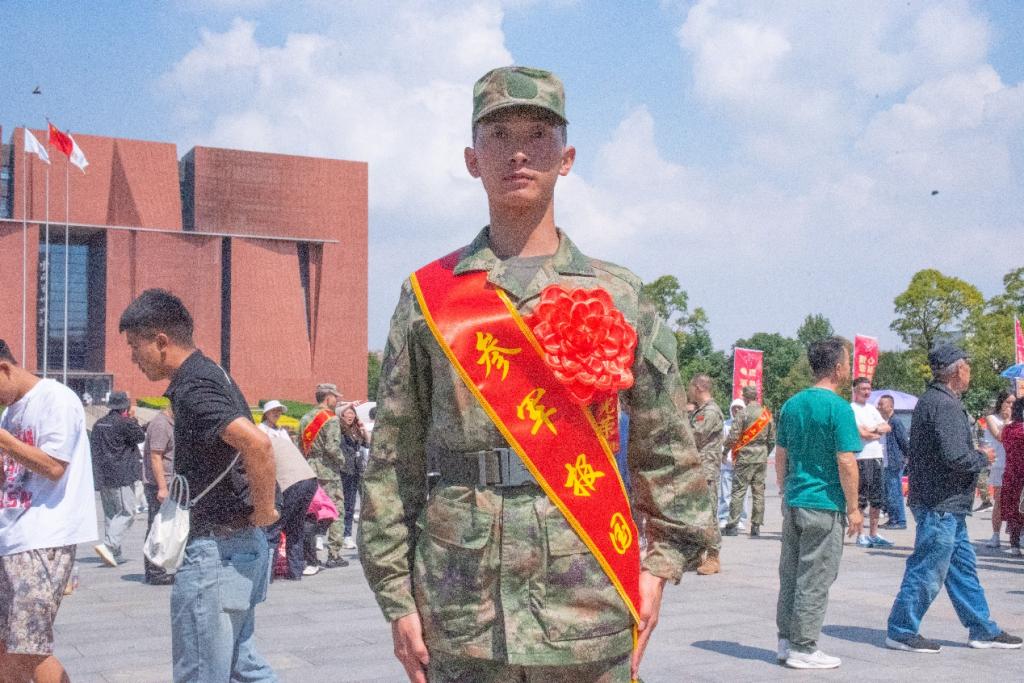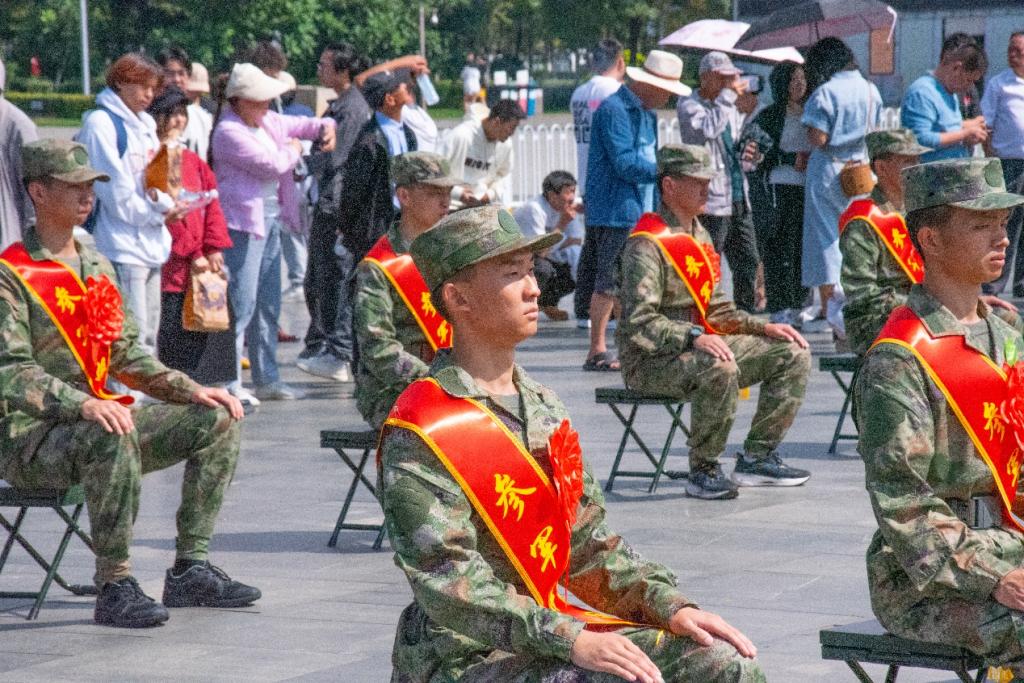 仪式上,出征的勇士,身着迷彩装,坚毅刚强。大红花映衬年轻脸庞,眼神充满对未来的憧憬与对祖国的忠诚。整齐的队列,自信而内敛。他们是新时代骄子,带着家乡期望奔赴祖国所需之地,用青春热血铸就钢铁长城,守护祖国安宁繁荣。