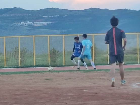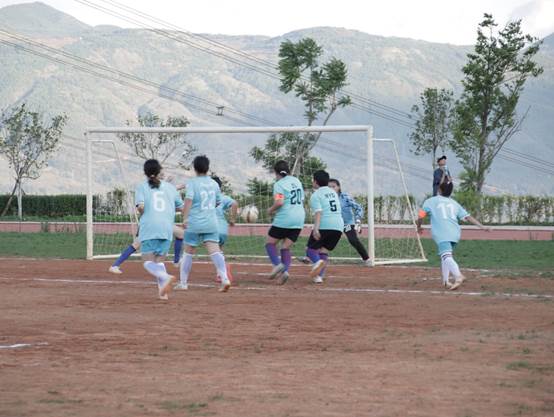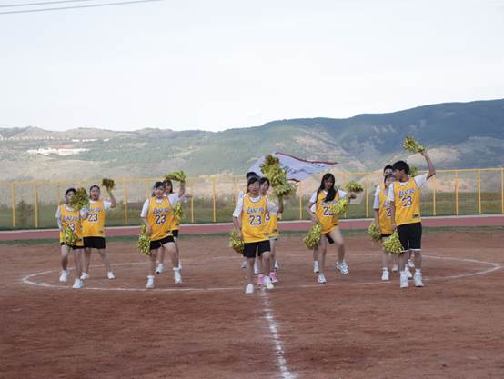 随着音乐随风飘向远方,精彩的啦啦操也随之结束。此时男队上场,比赛开始,你看那一技技漂亮的传球与射门,精彩万分。