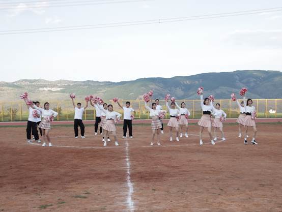 女队比赛落下帷幕,啦啦队迈着自信的步伐走进球场,你看!他们的舞姿多么有活力,带动了全场所有同学。