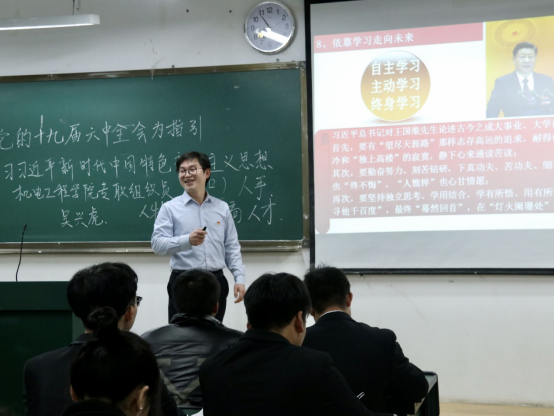 首先,吴兴虎老师以修业问道引出“明心见性,开悟觉醒”的观点,启发学员们深入思考。接下来,吴老师从“党的十九大确立习近平新时代中国特色社会主义思想为党的指导思想”、“习近平新时代中国特色社会主义思想实现了马克思主义中国化新的飞跃”、“习近平新时代中国特色社会主义思想的理论特色和历史贡献”、“习近平新时代中国特色社会主义思想的主要内容”、“深入学习贯彻习近平新时代中国特色社会主义思想”、“掌握马克思主义思想方法和工作方法”这六个方面深入浅出的讲解。他强调,为中国人民谋幸福、为中华民族谋复兴、为世界谋大同是习近平新时代中国特色社会主义思想的金钥匙。最后,他向同学们提出了四点建议:一是实事求是,讲真话、做真事会让自己面对困难时很从容,所有难题将会迎刃而解;二是发现自我、成就自我、超越自我,实现认知上的超越,不断升华自己的思想;三是坚持问题导向,针对性寻找方法解决问题;四是学会自主学习,多读书,让自己的大学生丰富多彩,实现人生价值。