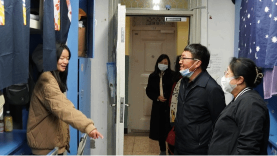党委书记牛定柱和同学们进行了亲切交谈,对即将离校和专升本的同学表示衷心祝福,期待同学们取得一个好的成绩,有一个美好的未来!此外,在走访的过程中,他亲切地强调同学们在大学的集体生活中,要学会培养良好的生活习惯,共同营造温馨、积极向上的宿舍氛围,并鼓励同学们要学好专业知识,提高自己的综合素养,做未来国家建设的栋梁之材,争做民族复兴大任的时代新人!