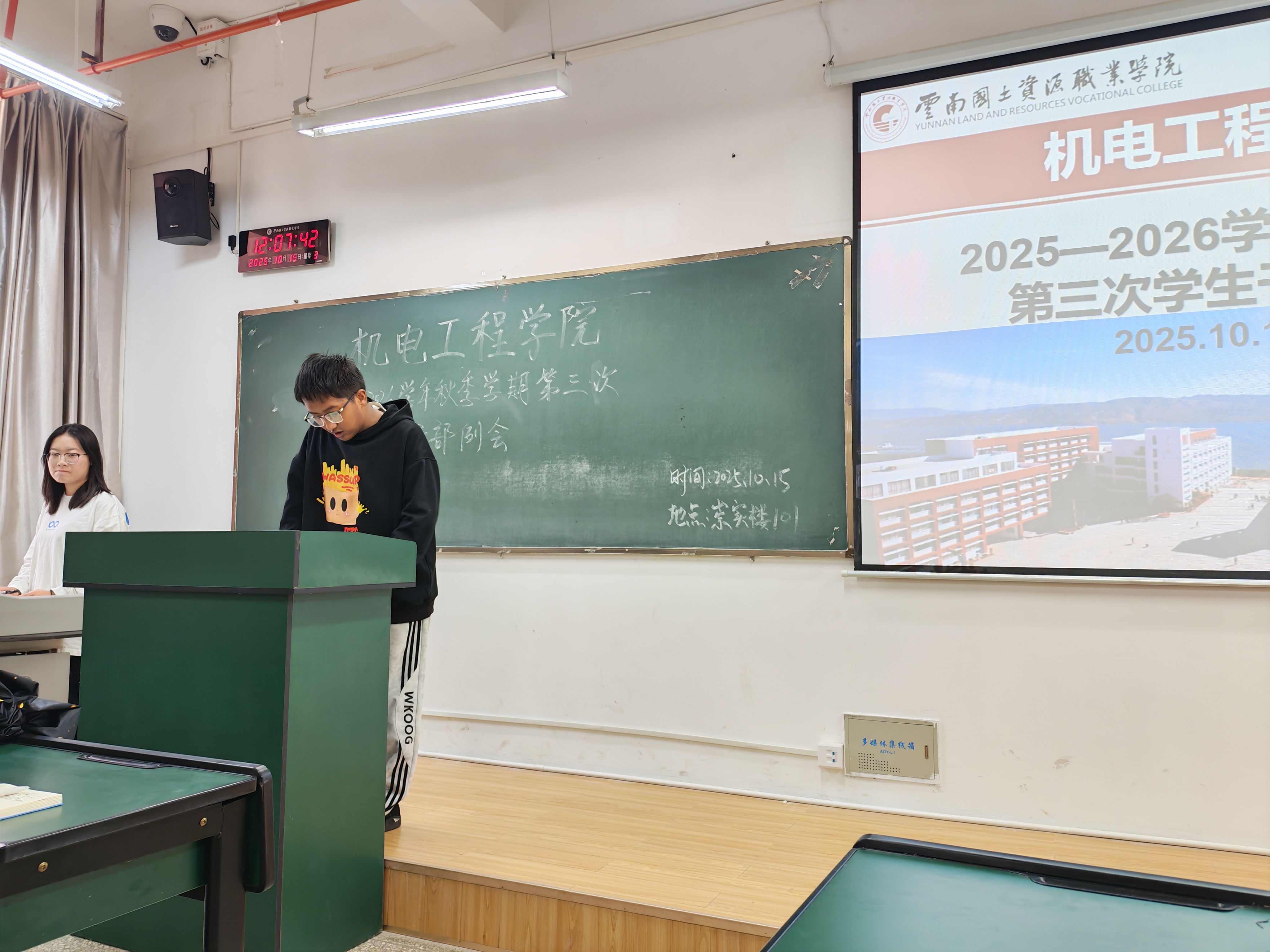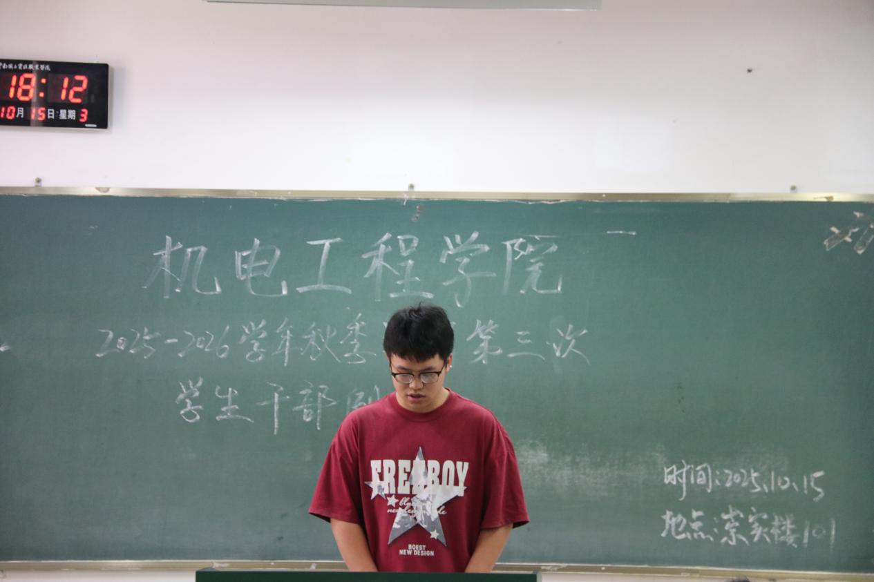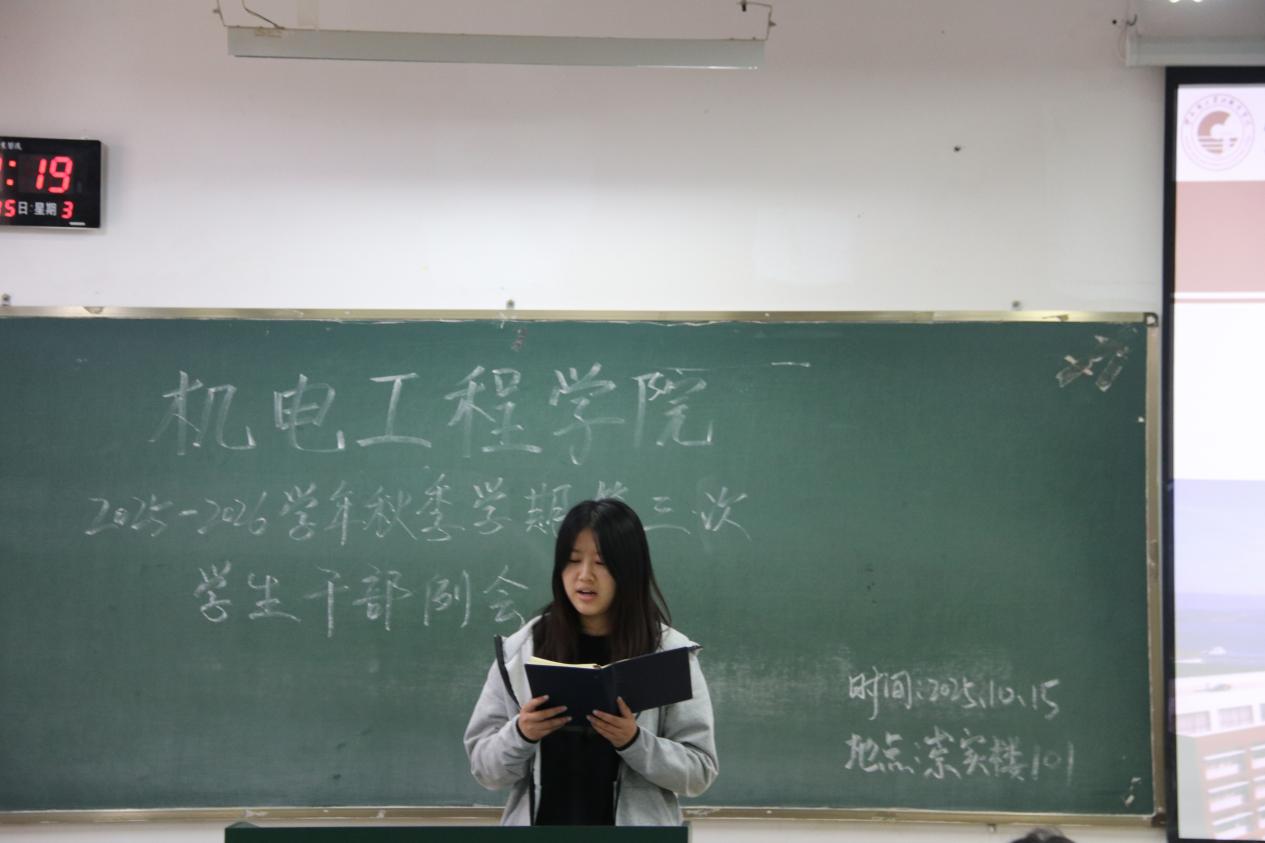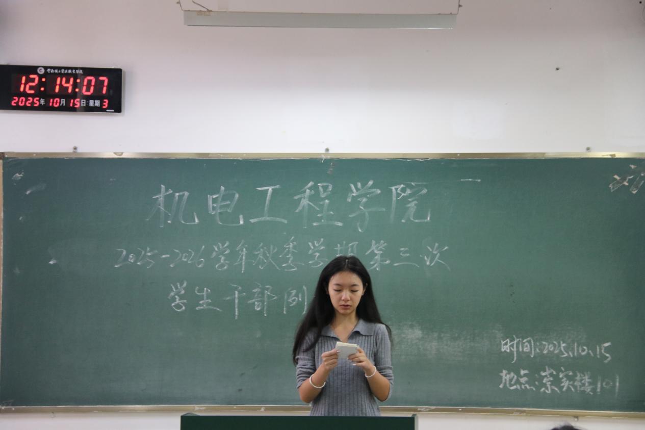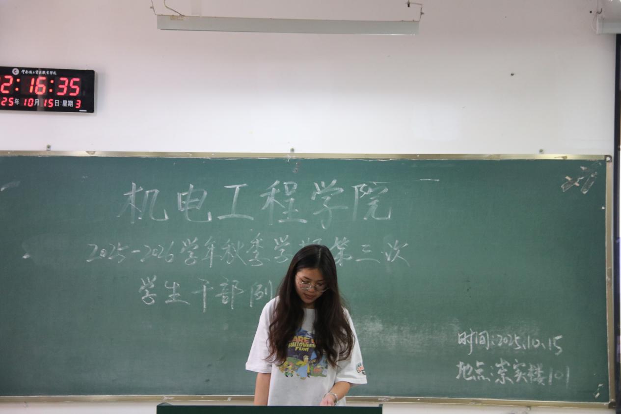 为统筹推进秋季学期学生工作,澳门十大信誉好的网站于10月15日召开本学期第三次学生干部例会。团学工作者杨珍妹老师、胡见平老师及全体学生干部参加会议。