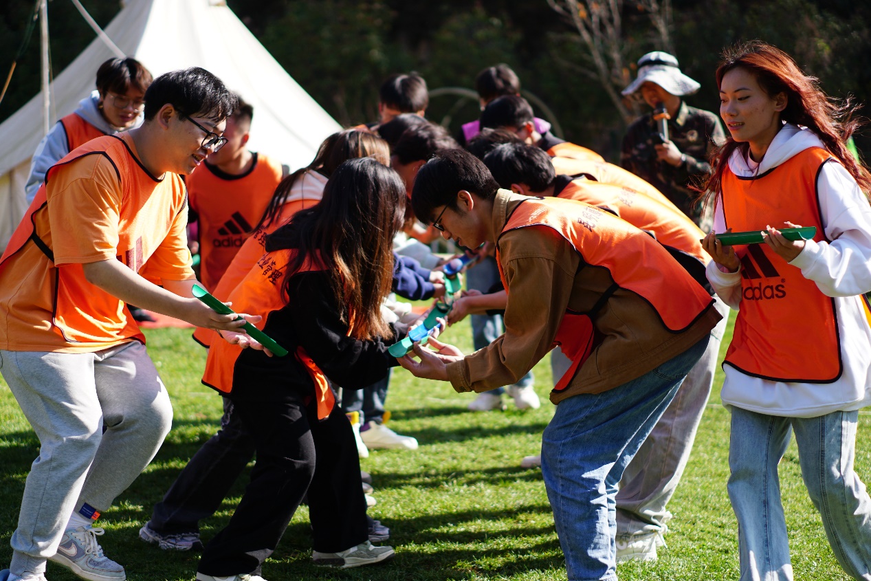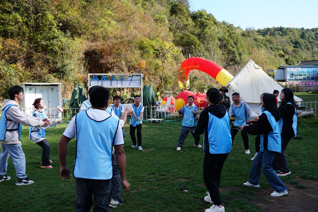 本次素质拓展训练由专业教官带领进行。首先,经过报数环节,所有成员被分为三个小队,并进行了编队名、选队歌、定口号和绘队旗、编队舞等,将队员们迅速整合成一个集体。各队依次进行团队风采展示,使队员间建立了合作意识和团队意识。随后在教官的带领下,陆续开展了“珠行万里”“挑战180”“冰海沉船”“鼓动人心”拓展项目。