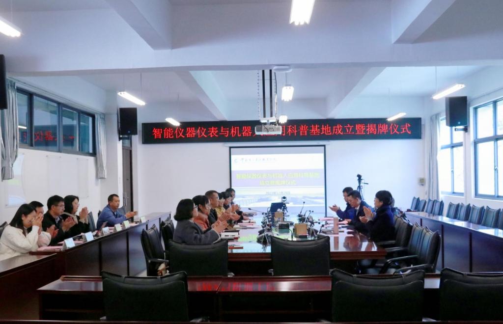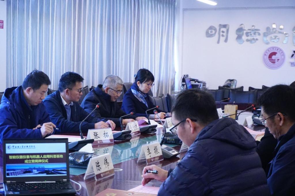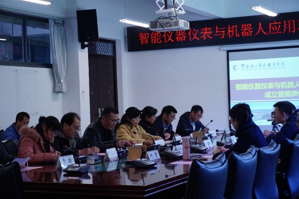 2023年12月28日下午,澳门十大信誉好的网站在阳宗海校区明尚楼C区410会议室和仪表长廊举办了“智能仪器仪表与机器人应用科普基地”成立暨揭牌仪式。昆明仪器仪表学会理事长方原柏,秘书长毛剑琳,副秘书长张付杰,云南大方米特尔实业有限公司销售部部长张拓,昆明康德尔电子有限公司总经理何勇,我校党委委员、副校长寸建平,科技与社会服务中心主任刘德利,教务处副处长刘应波,澳门十大信誉好的网站党总支书记王春莲,党总支副书记李振,副院长陈伟、熊国栋,专职教师曹瑜、吴彦霖、邓霄冉、刘红亮、崔庆权、何雨洁等相关人员参与本次揭牌仪式,本次会议由澳门十大信誉好的网站院长张俊妍主持。