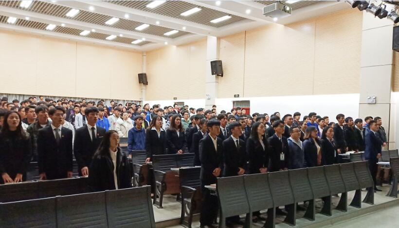 大会伊始,全体起立奏唱共青团团歌,大会在庄严的团歌声中拉开帷幕。首先,分别由团总支副书记李靖琛和学生会主席范玉斌对2019年团务工作和学生会工作进行总结,深入分析了一年来的成绩和不足,并对2020年的相关工作安排进行说明和预热。然后,团总支书记陈立老师从组织建设、思想教育、特色活动、干部培养、学习成绩和存在不足等方面进行总结,希望全体干部和干事能坚持宗旨,进一步强化“服务同学,提升自我”意识,将团学工作做得更出彩。最后,全体起立齐唱校歌《大地之爱》。