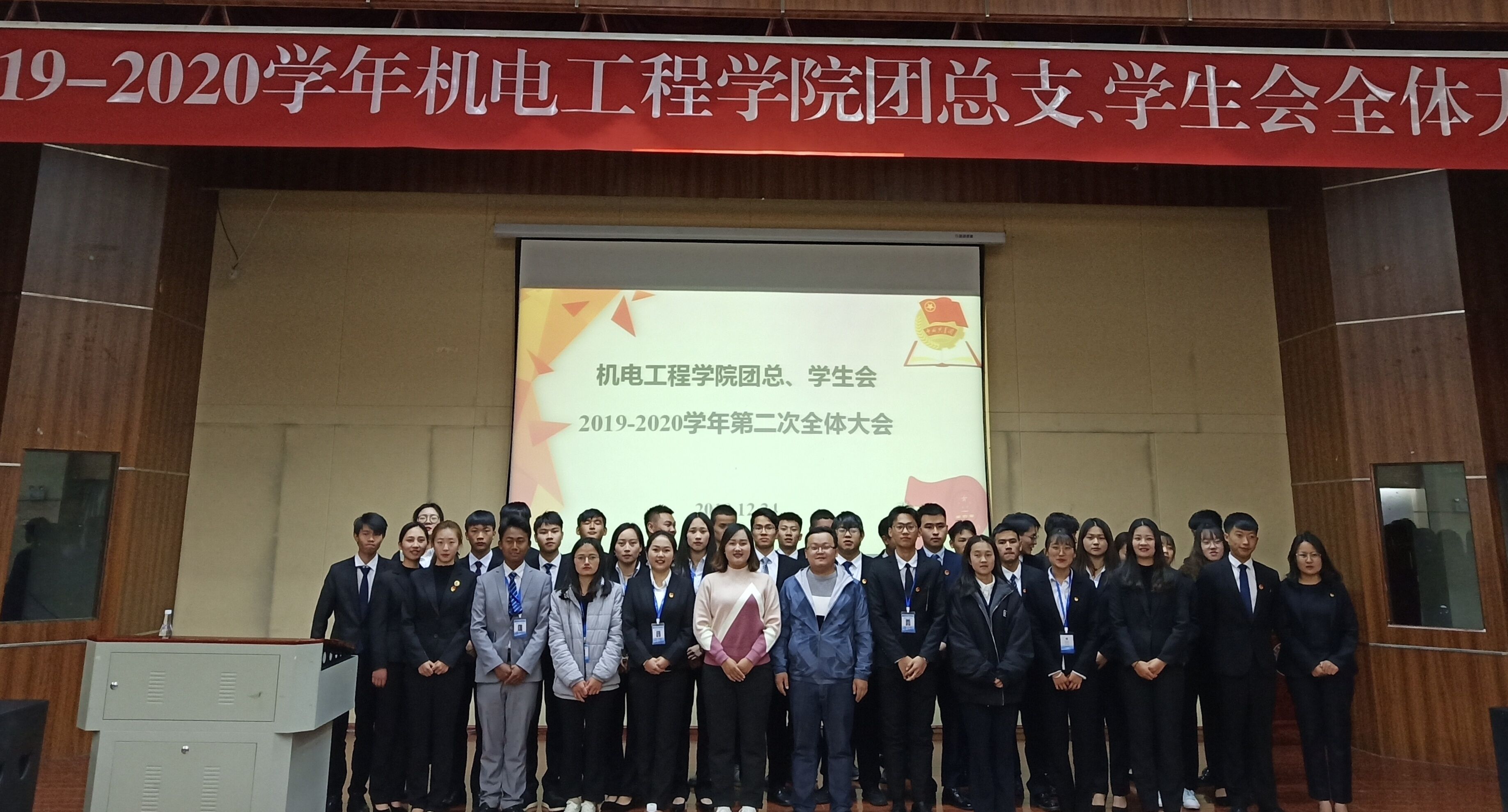 2019年12月24日19时,澳门十大信誉好的网站团总支、学生会在光荣讲堂召开总结大会。参加此次大会的有团总支书记陈立老师、辅导员李玉老师、18级全体团学干部和19级全体干事。