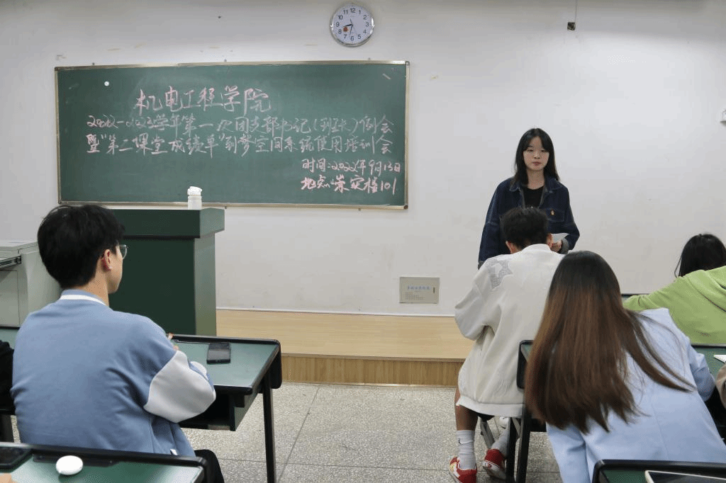 第二部分,由学生会学习实践部部长杨露对“第二课堂”相关文件进行解读,并对“第二课堂成绩单”到梦空间系统的使用方式进行了讲解。她希望2022级所有干部要认真学习,学懂弄通,主动帮助班级同学解决到梦空间系统的激活和使用问题,让“第二课堂”落实落细。