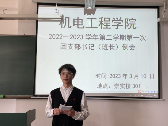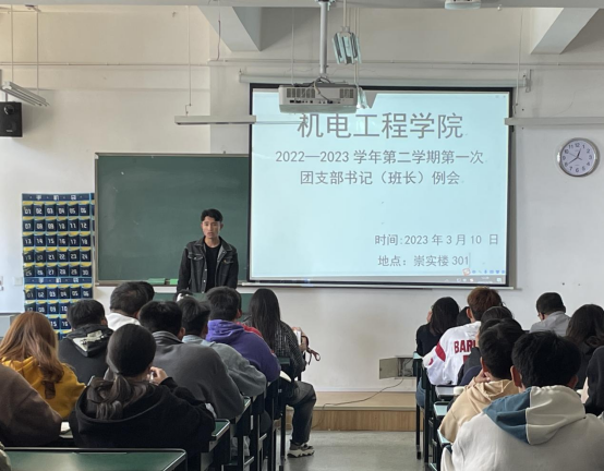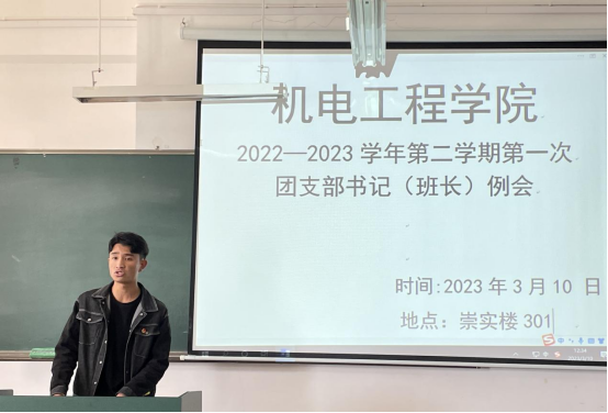为加强团支部建设,凝聚发展共识,确保新学期各项团学工作有序开展,3101230我院团总支在崇实楼301召开2023年春季学期第一次团支书例会,本次会议由团总支副书记张立山主持,学院2021级、2022级全体团干部共同参与。本次会议分为三个环节。