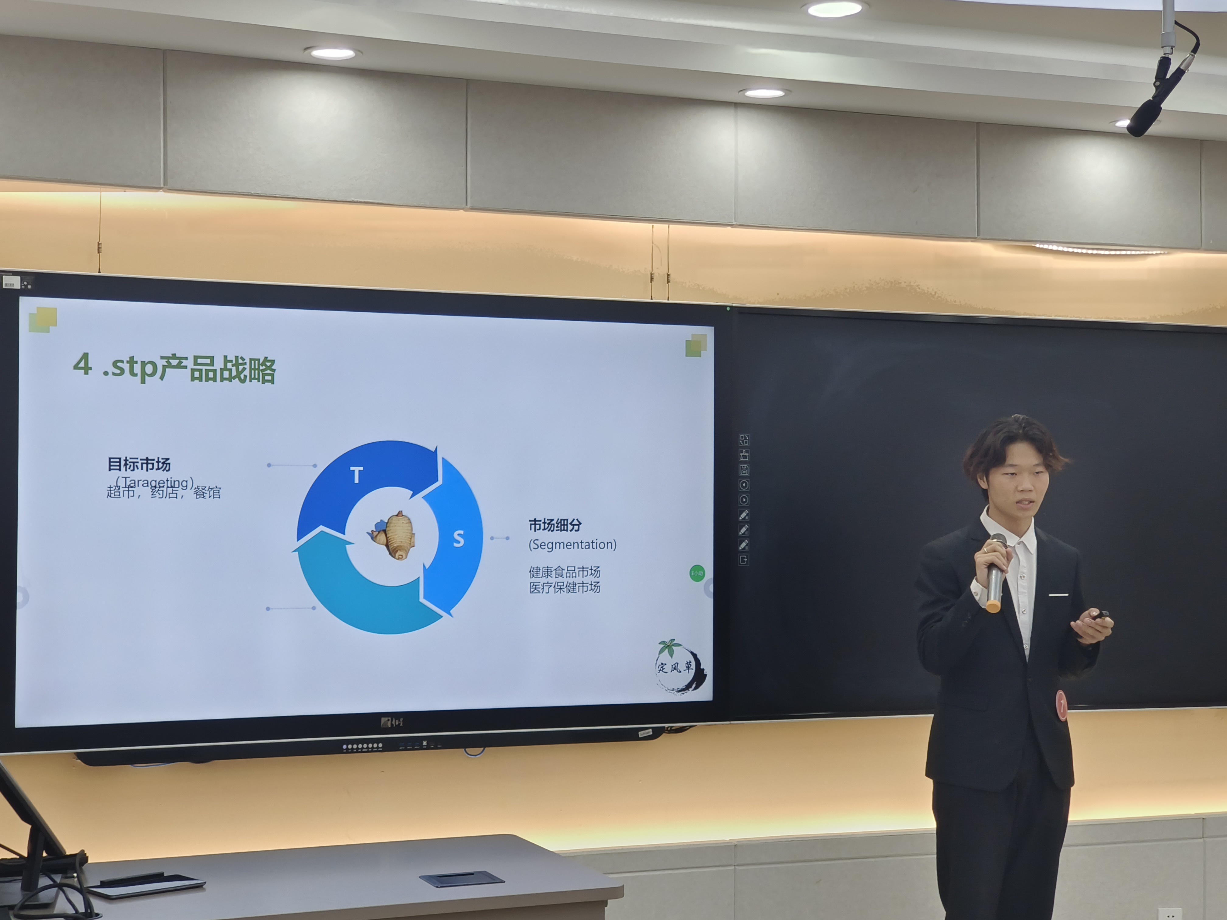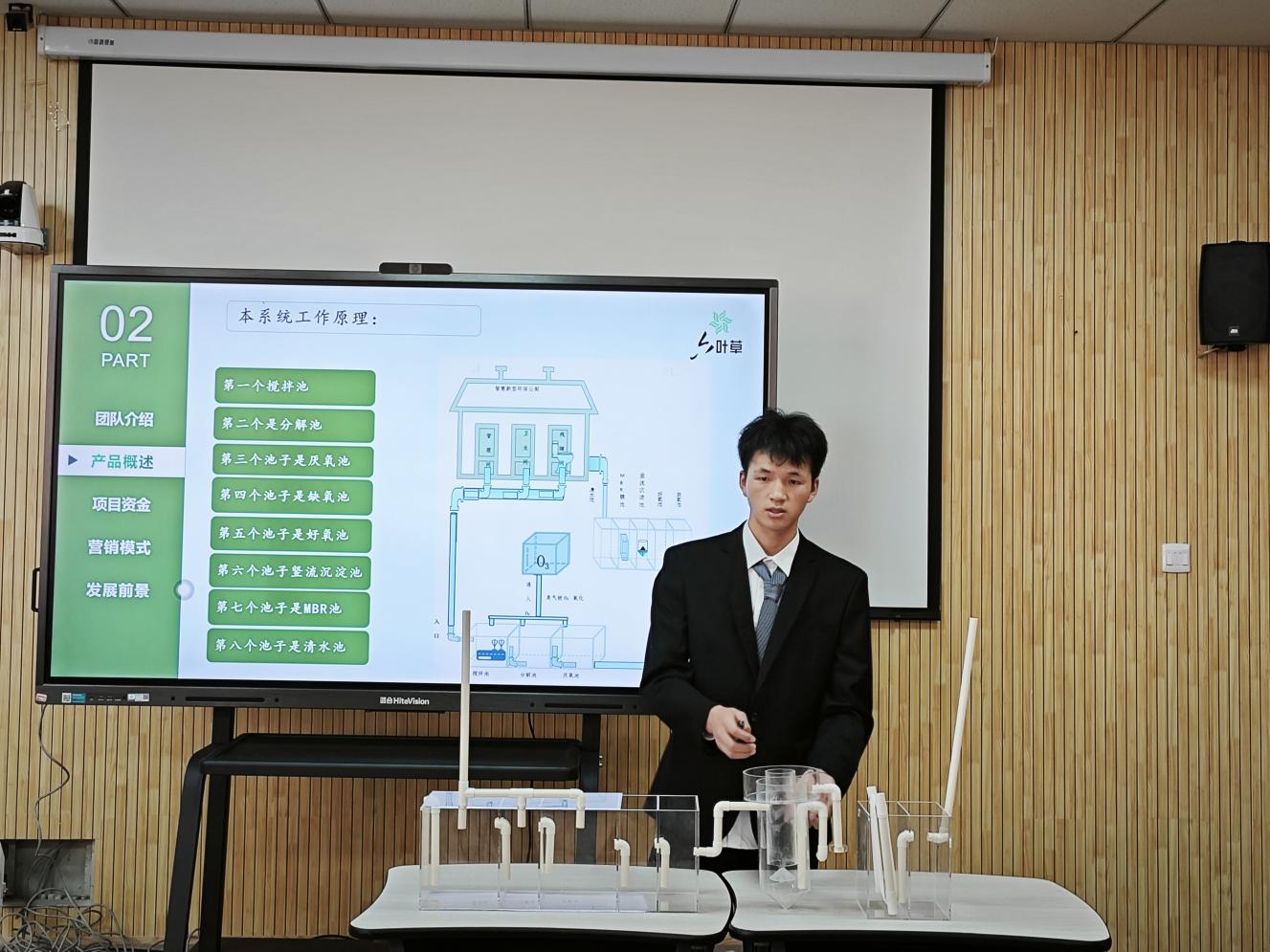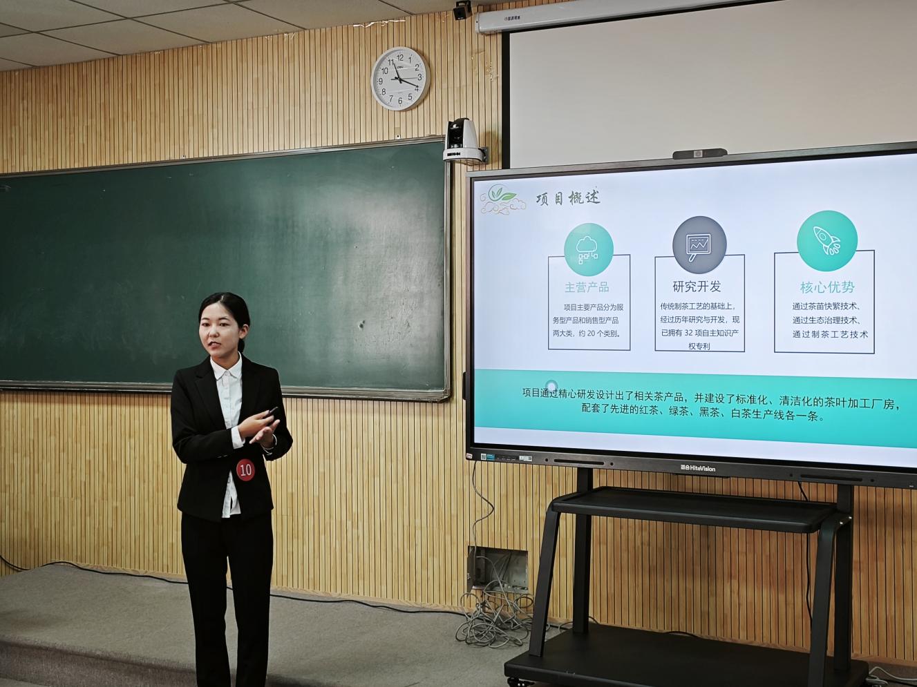比赛设置项目路演、现场答辩两个环节。项目路演环节,各项目负责人根据抽签顺序依次上台,通过PPT、视频、实物展示等方式从项目背景、商业模式、运营模式和未来规划等方面进行展示。
