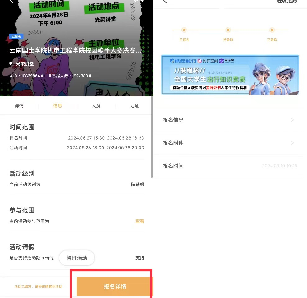 若报名后,无法在该活动时间段参加,可在活动开始前,在活动详情主页下方取消报名。
