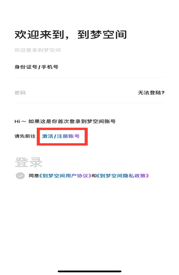 “到梦空间”APP账号激活流程