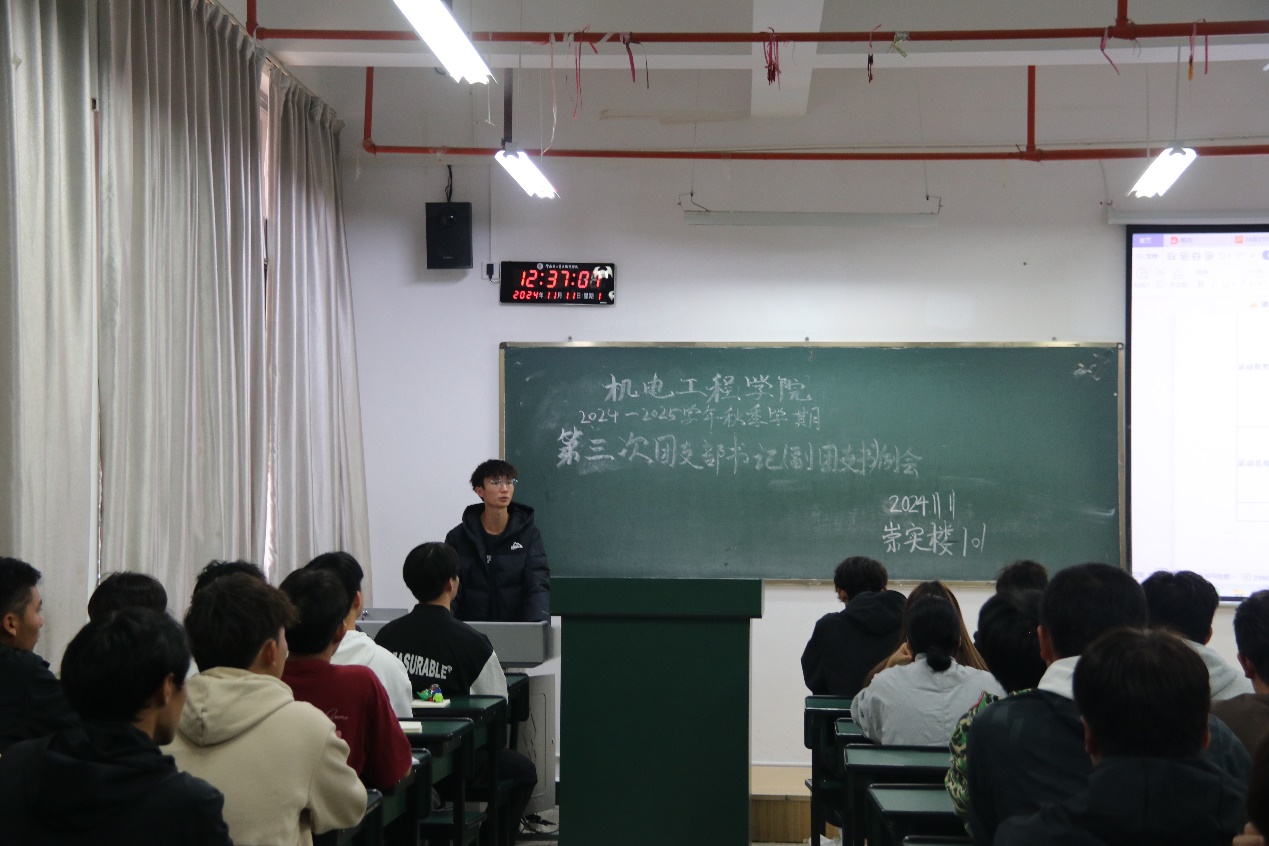 11月11日中午,澳门十大信誉好的网站团总支在崇实楼101开展了本学期第三次团支书(副团支书)例会。本次会议由学院团总支副书记罗杰主持,在校各班团支书(副团支书)共同参加。