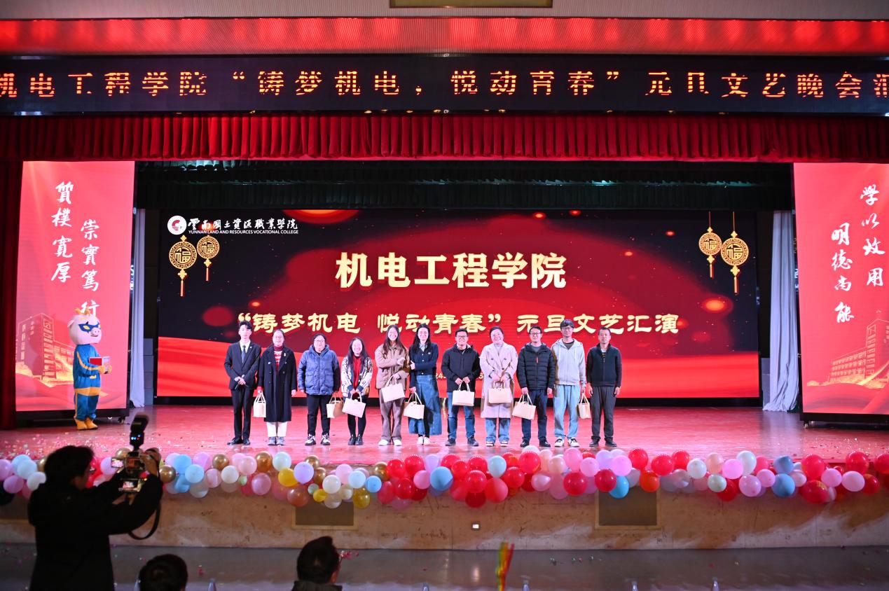 12月26日18:00,澳门十大信誉好的网站“铸梦机电,悦动青春”2025年元旦文艺汇演在明礼堂拉开帷幕,本次晚会有幸邀请到了建设工程学院党委书记李洪香、素质教育学院党总支书记苏和平、校团委书记罗之鹏、校团委副书记熊欢以及澳门十大信誉好的网站党委领导班子成员共同参加。晚会现场,还邀请了兄弟学院团总支负责人及老师担任专业的评委团,学院辅导员老师和24级班主任、24级同学们欢聚一堂,共同享受这场视听盛宴!