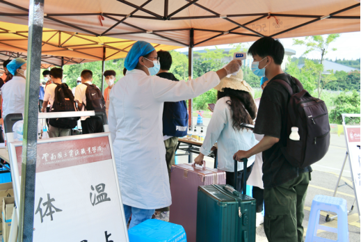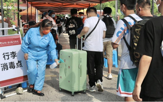 8月25日、26日,学院全体辅导员和志愿者们一直坚守阵地,他们分工明确、各司其职,有的负责行李消毒,有的负责测量体温,有的负责核验健康码、行程码和核酸情况,有的负责入校扫码;他们严格执行疫情防控各项要求,认真核准师生返校条件,实时关注师生返校动态;从日出到日暮,学院全体参加返校工作的师生热情服务,耐心引导,不仅确保了广大师生安全返校,还让返校师生感受到了“回家”般的温暖。