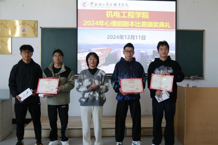心理剧剧本比赛圆满落幕,该项比赛是心理健康教育重要载体。全院师生积极参与,各评委严格评分,评选出六个优秀作品获得奖励。本次参赛作品紧扣学生心理成长主题,生动展现大学生心理困境与突破勇气,全院共鸣强烈。其中,24 电气自动化技术 2 班拔得头筹,24 工业机器人技术 2 班与 24 建筑消防 技术2 班并列第二,24 机电设备技术 2 班、24 安管技术 1 班、24 数控技术 4 班同获第三。