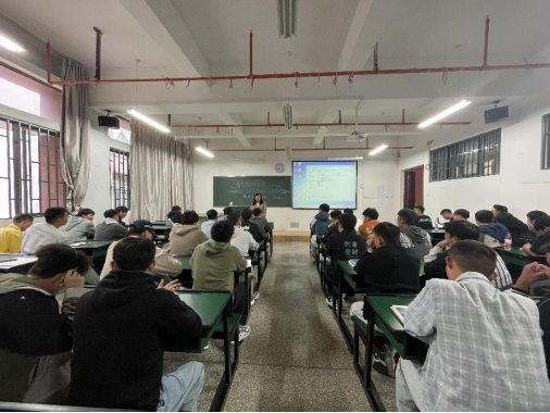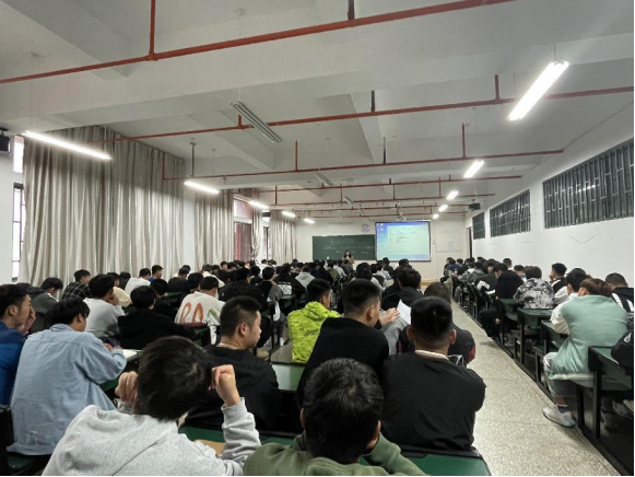 紧接着,党员教师董治全结合目前的就业形式就国家新出台的政策进行了分析。他希望同学们勤学勤问、学会思考、学会总结,找准职业定位,在实习实践中成长为能工巧匠,脚踏实地、吃苦耐劳,学真知识,练真本领,不断积累工作经验,做一个勇于奋斗、堪当大任的大学生。