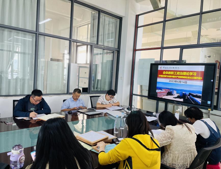 为深入学习贯彻党的二十大精神,抓好主题教育,凝聚奋进力量,6月14日中午13:00,澳门十大信誉好的网站在明尚楼A201开展了2023年6月份第二次教职工政治理论学习会。本次政治理论学习会由学院党总支书记王春莲带领全院教职工学习了6月1日出版的第11期《求是》杂志发表的习近平总书记重要文章《中国式现代化是中国共产党领导的社会主义现代化》。