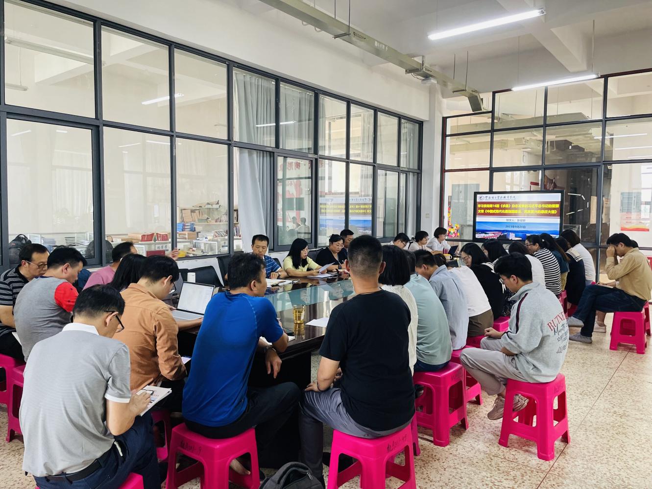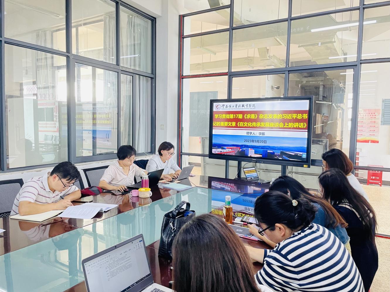 党总支副书记李振提纲挈领地带领全院教职工学习了习近平总书记在《求是》杂志中发表的《在文化传承发展座谈会上的讲话》重要文章。他认为习近平总书记在文化传承发展座谈会上的重要讲话深入总结了中华文明的突出特性,深刻阐释了“两个结合”的重要意义,指出了担负起文化使命的方法,为建设中华民族现代化文明和社会主义强国提供了行动指南和根本遵照。他希望全体教职工要坚持以文塑魂、以文化人、以文聚力,弘扬重视学习、崇尚学习的优良传统,以实际行动引导学生学习传承优秀文化,凝心聚力做好学院各项工作。