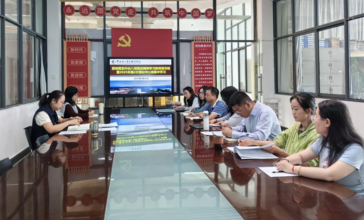 4月23日上午,澳门十大信誉好的网站党委在明尚楼A201举办深入贯彻中央八项规定精神学习教育读书班暨2025年第2次理论学习中心组集中学习。本次学习由学院党委书记张颖主持,学院党委委员、各党支部委员参加。
