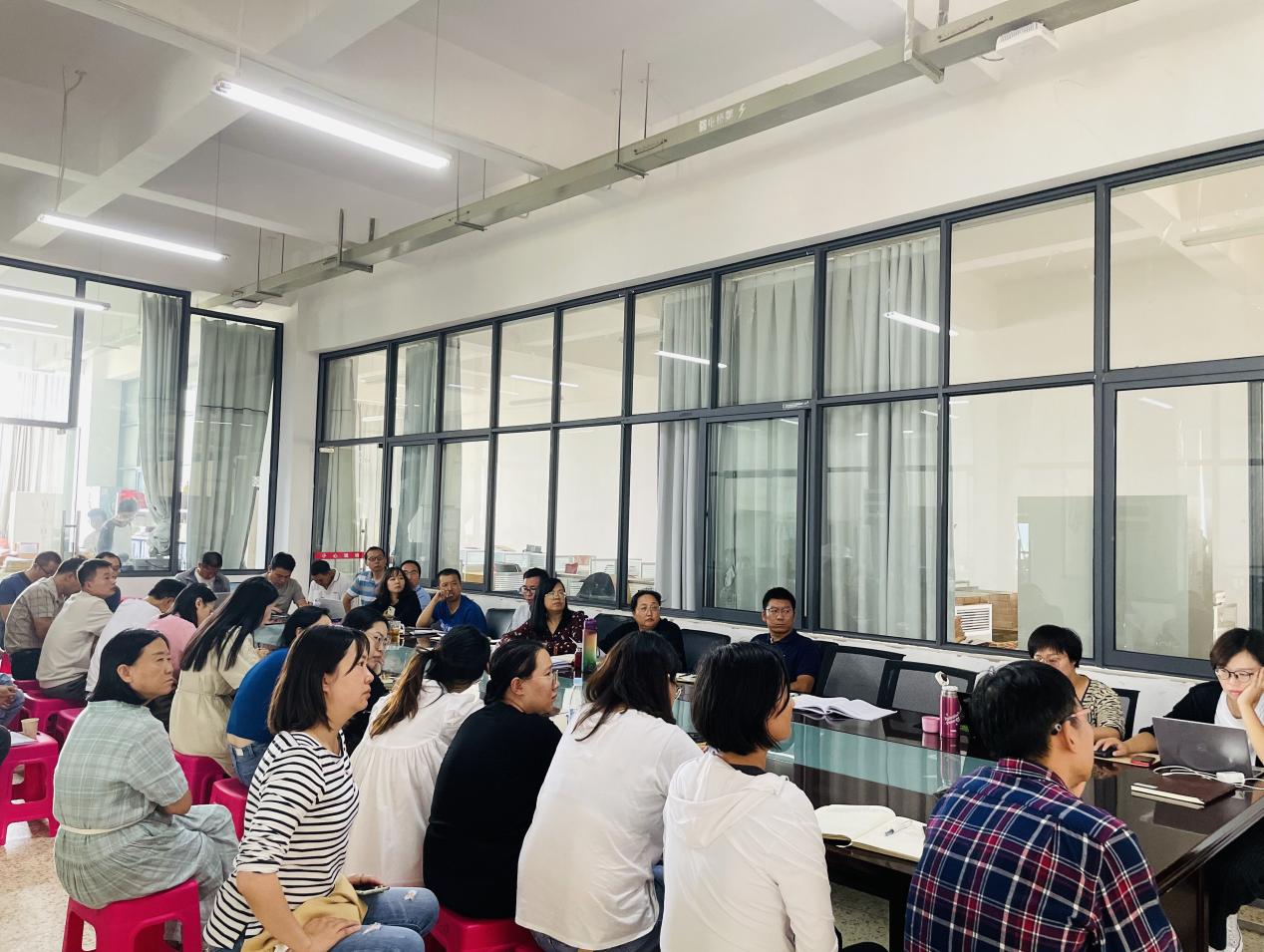 交流会上,吴兴虎老师以工作日志的形式向与会教职工介绍了本次驻厂工作的地点、方式、内容等基本情况。他认为,制造业前途宽广,学生实习条件和工资待遇有保障,大部分同学能够胜任实习工作,对实习企业的生活环境、薪资待遇较为满意;少部分同学对制造业现状的认识不深,无法承受产线工作的体力消耗和两班倒的辛苦;极少数同学环境适应能力和人际关系处理能力较弱,不能有效解决实习工作中遇到的困难和问题。