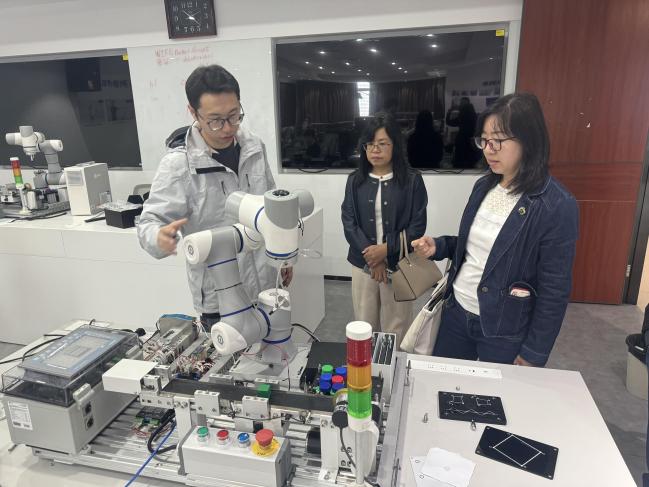 12月10日上午,两位学院领导来到深圳市越疆科技股份有限公司,作为全球先进的智能机器人研发制造商,其产品已在14家世界500强3C电子企业的高质自动化生产中广泛应用。在交流期间,深入了解了智能机器人研发制造的前沿技术与多元应用场景,对智能制造领域的新技术、新趋势形成了更为直观且深刻的认知,这将有力地促进学院在相关专业课程教学内容的更新与拓展。