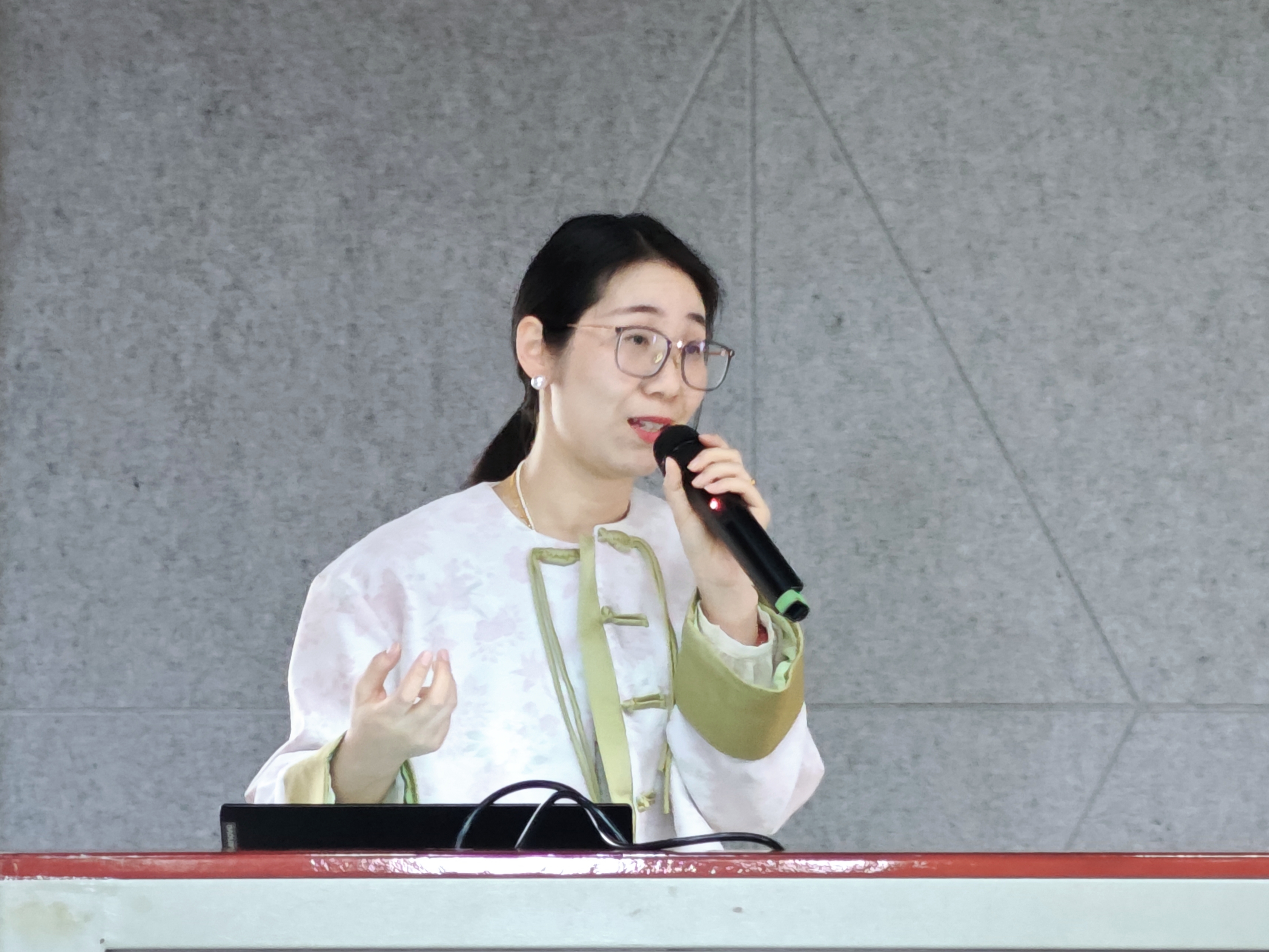 会上,郑一萍老师分享了她的工作经验并强调了沟通的重要性。她给同学们介绍了嘉兴的概况,包括历史、地理、名人等方面,着重讲了金庸的一系列小说,增加同学们对嘉兴的了解。产业学院对25名全勤同学给予表彰,师生合影留念。