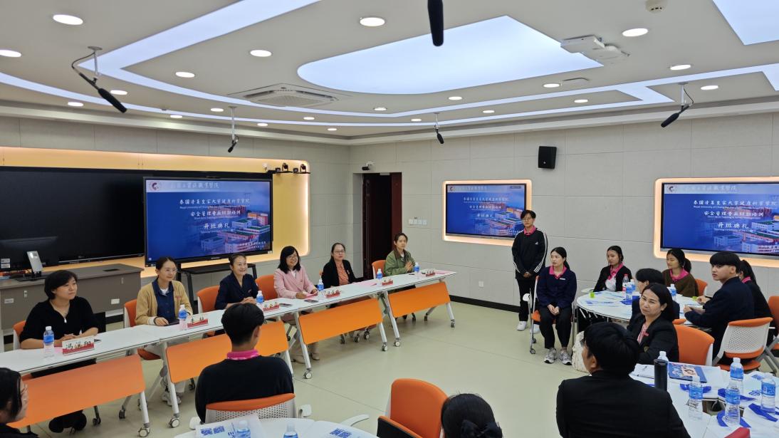 开班仪式上,我校副校长张云霞首先对参与本次培训的泰国师生表示热烈欢迎和诚挚问候,并向与会人员介绍了学校的发展历程。她表示,本次培训聚焦“消防安全”这一核心主题,进行为期12天的深入研习与交流,充分体现“中泰一家亲”深厚情谊与“一带一路”教育合作倡议。