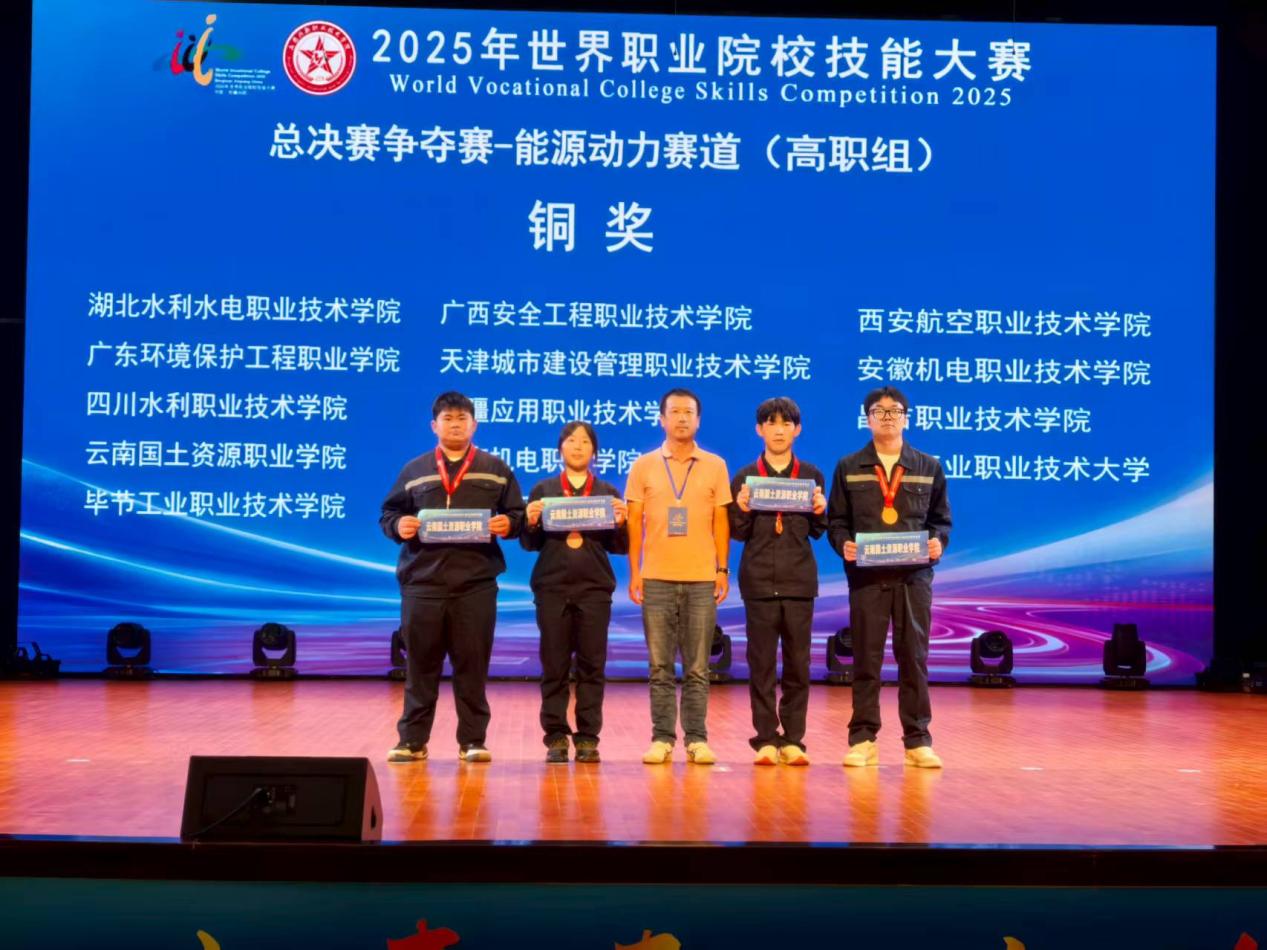 9月4日至9日,2025年世界职业院校技能大赛总决赛能源动力赛道(高职组)在新疆建设兵团兴新职业技术学院圆满落幕。云南国土资源职业学院澳门十大信誉好的网站学生方攀、陈倩、陈麟、芶大飞组成的参赛团队(指导老师:熊国栋、杨正宏),通过一个暑假周期的全力备赛,从全国96所院校的102支参赛队伍中脱颖而出,喜获铜奖,为学校赢得荣誉。